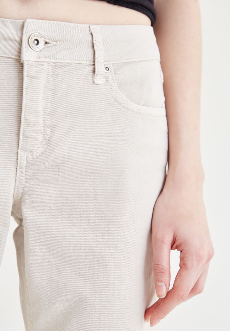 Krem Kısa Paça Slim Boyfriend Pantolon