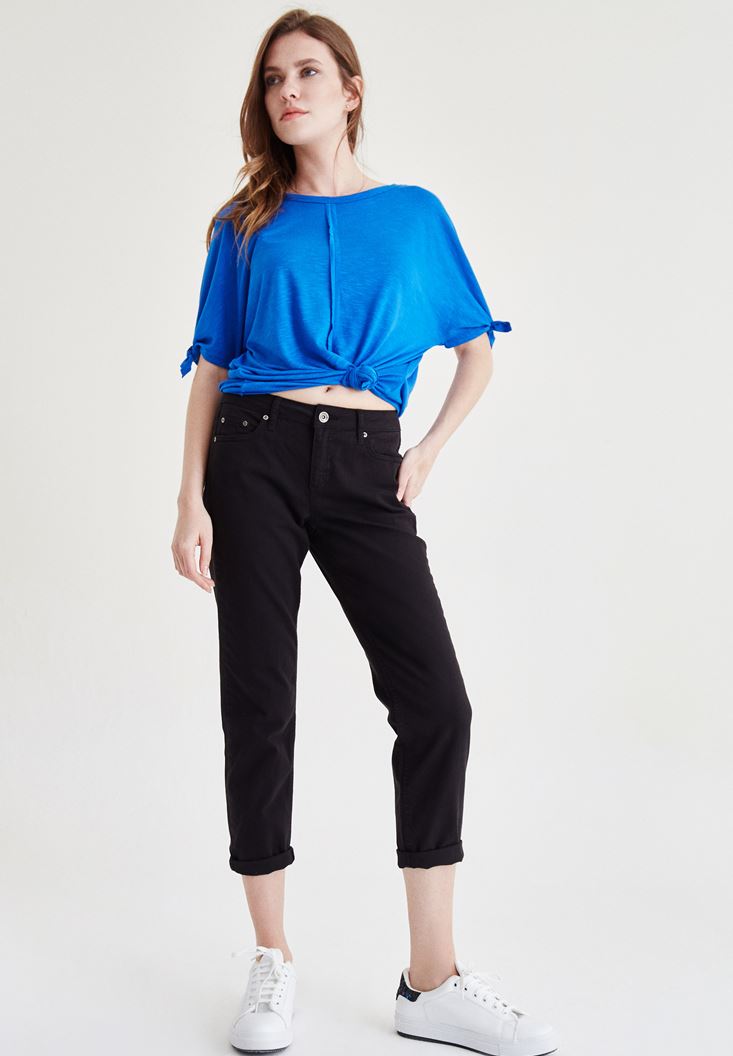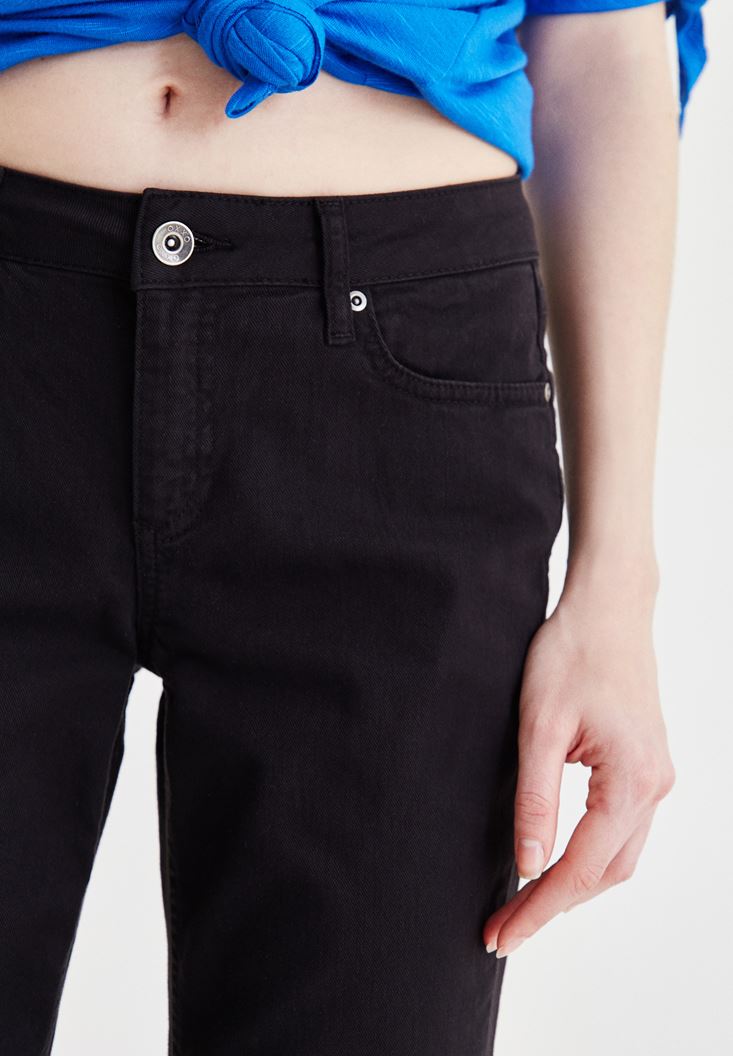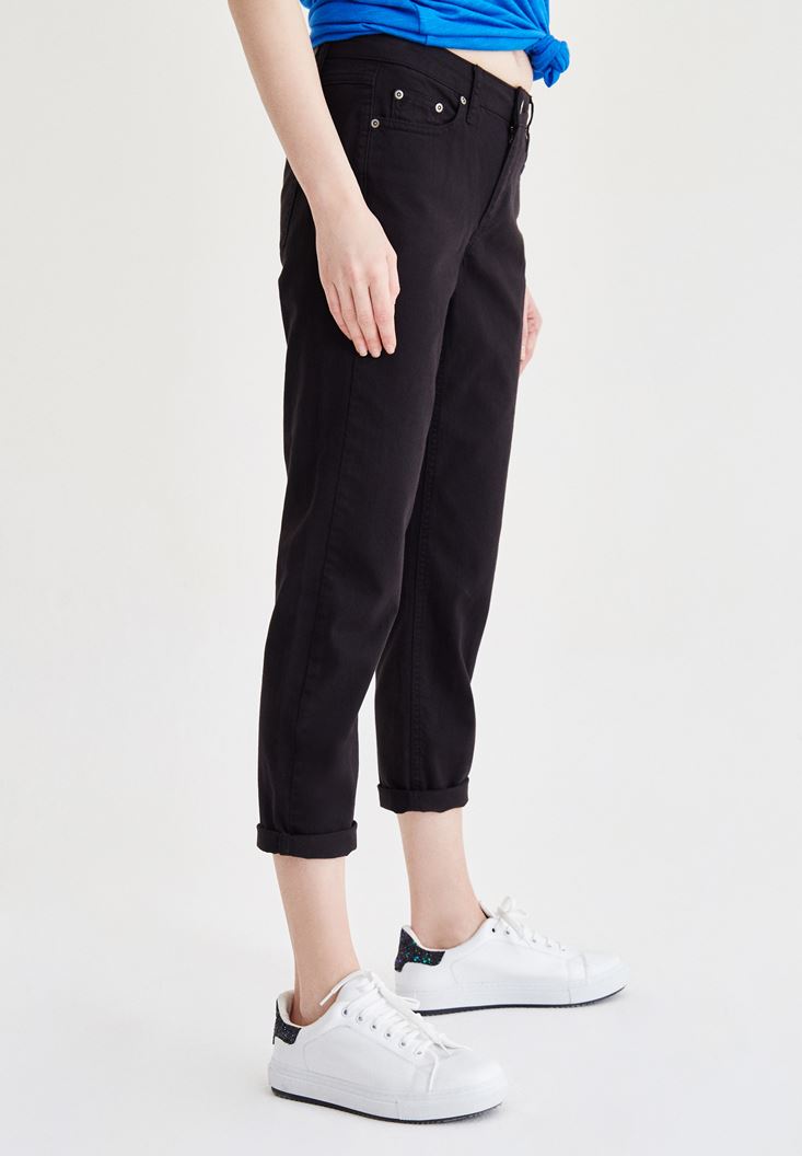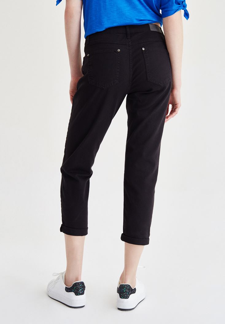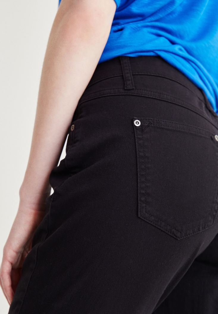 Siyah Kısa Paça Slim Boyfriend Pantolon