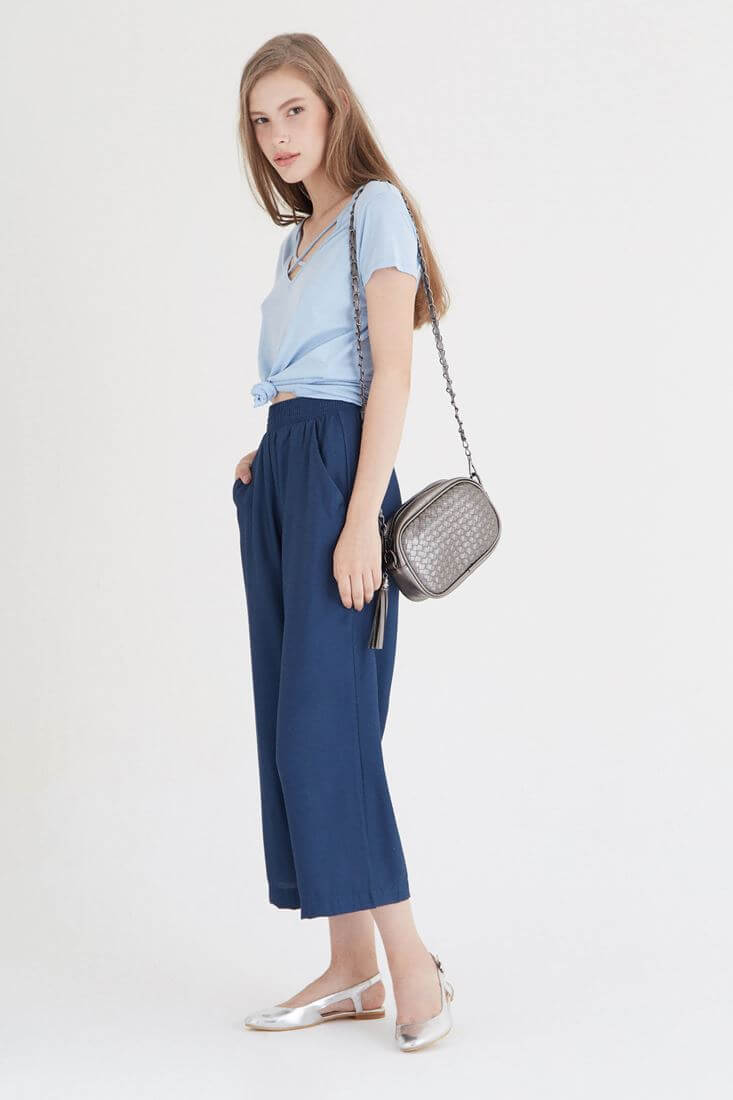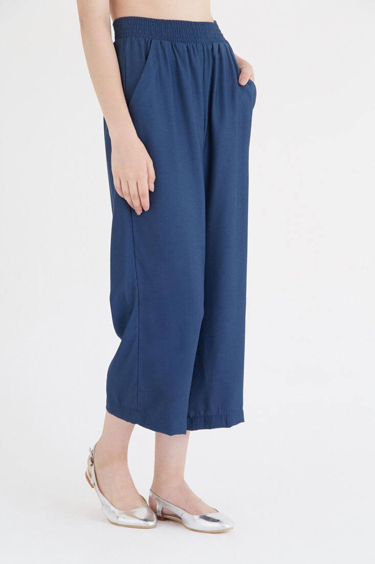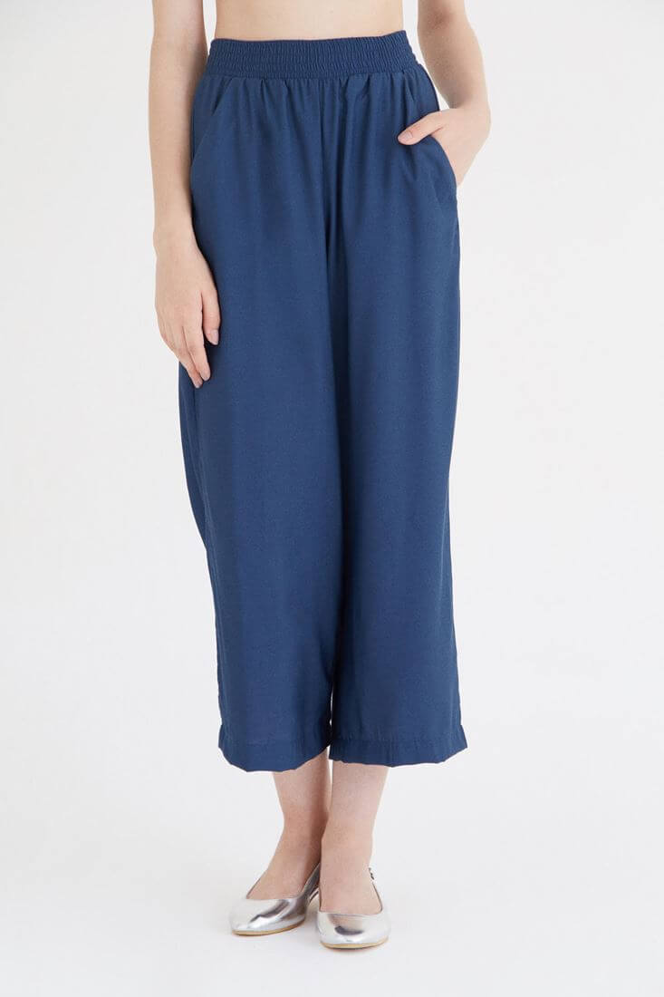 Beli lastikli kısa paça bol pantolon