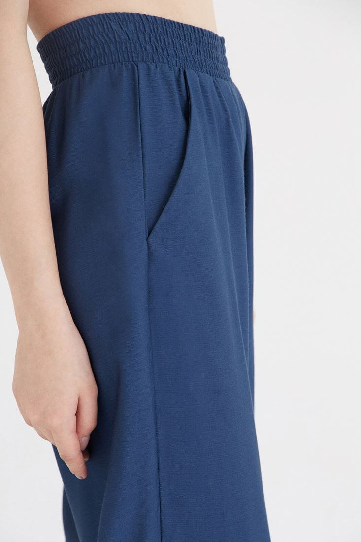 • Bayan Mavi Kısa Paçalı Bol Kesim Pantolon