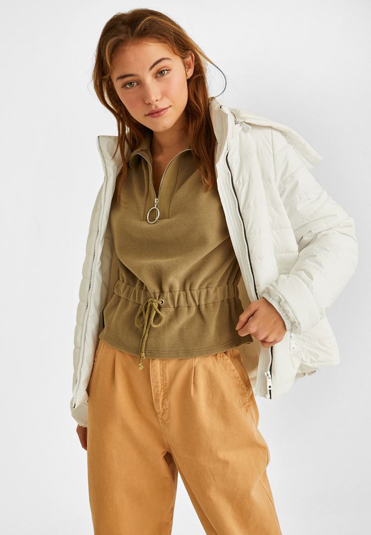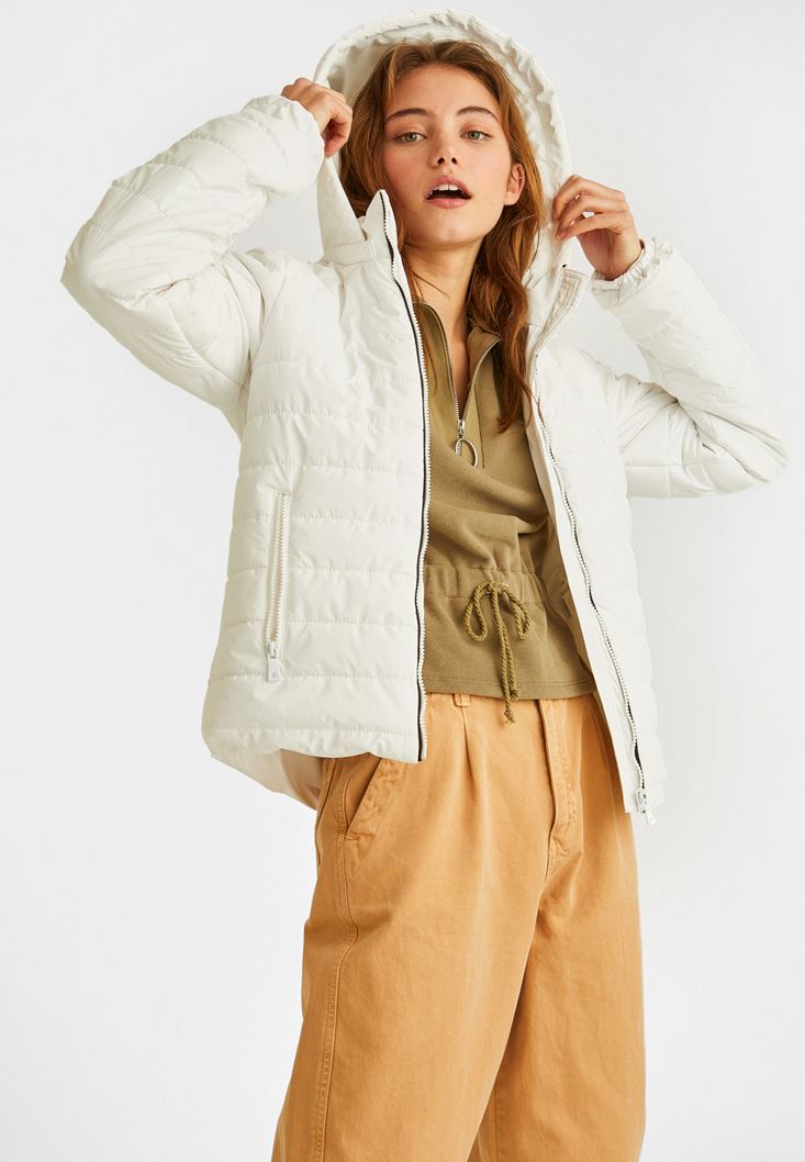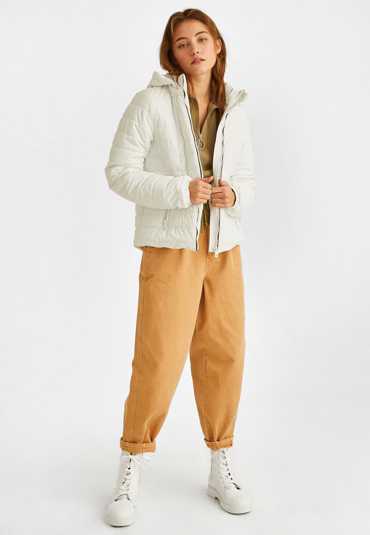 Krem Kısa Şişme Mont