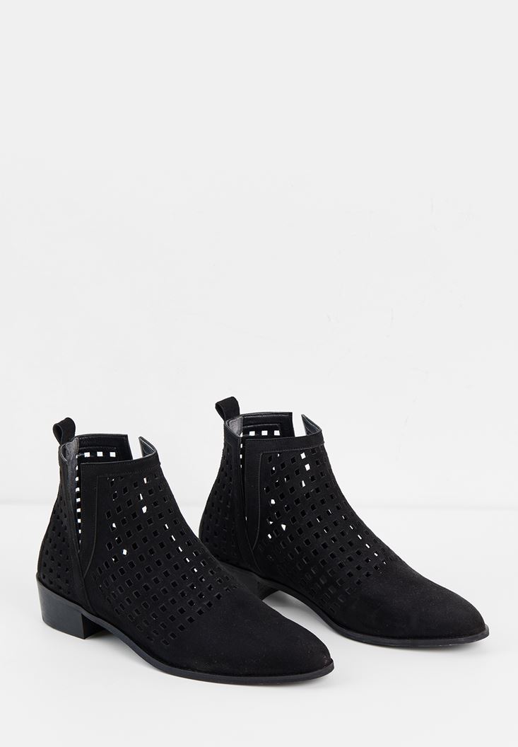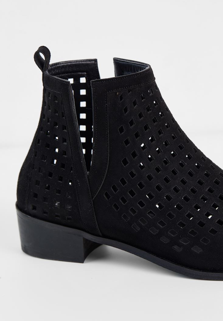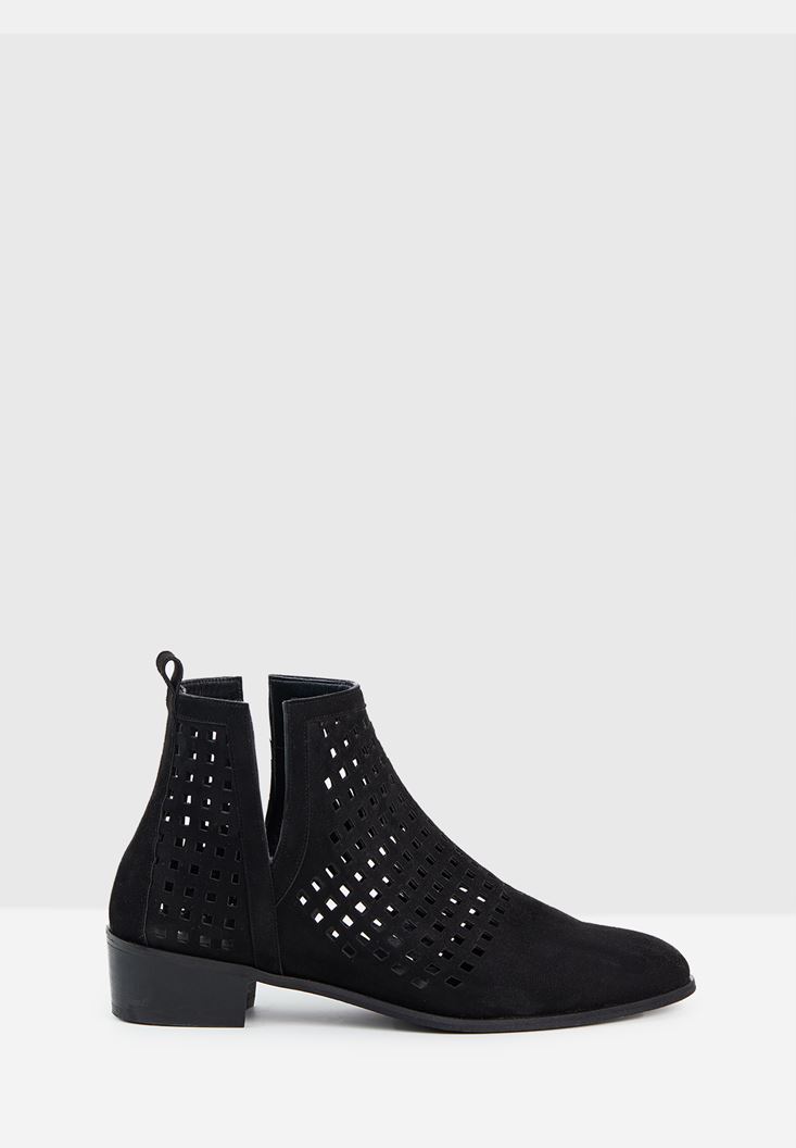 Siyah Kısa Topuk Detaylı Bot