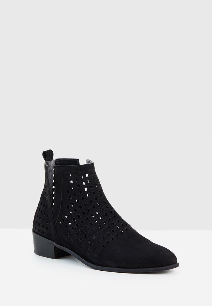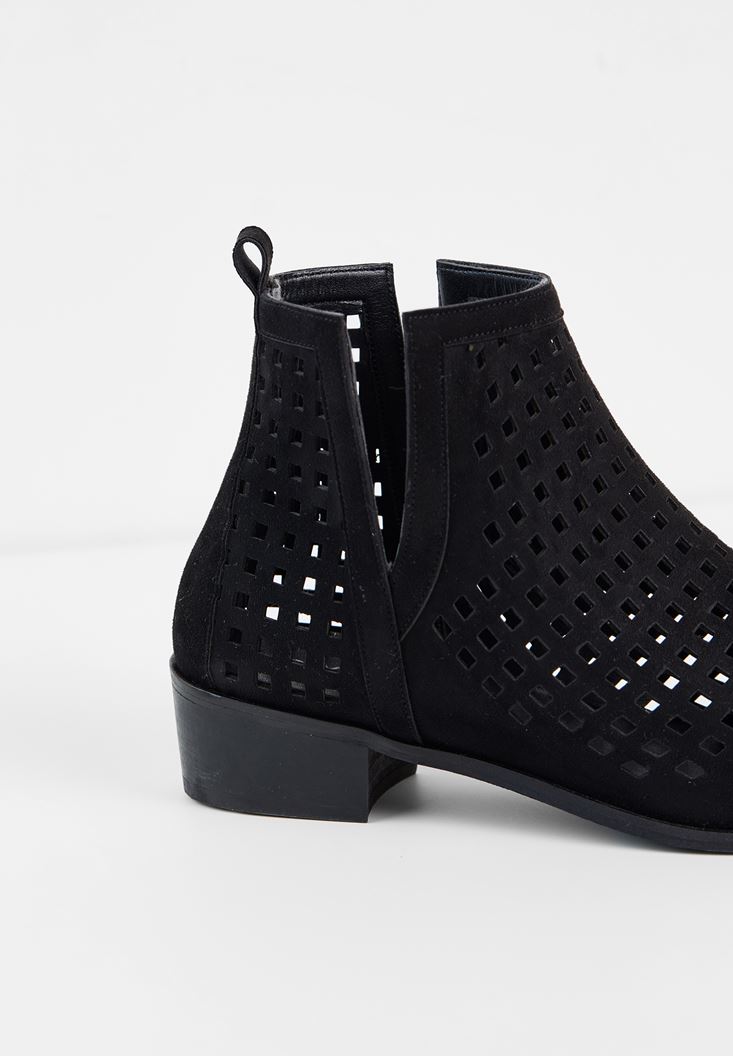• Bayan Siyah Kısa Topuk Detaylı Bot