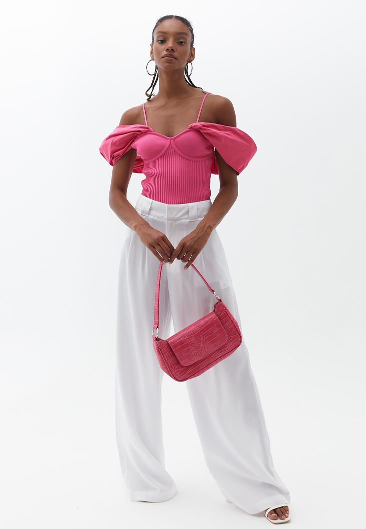 • Bayan Pembe Kol Detaylı Askılı Triko Atlet