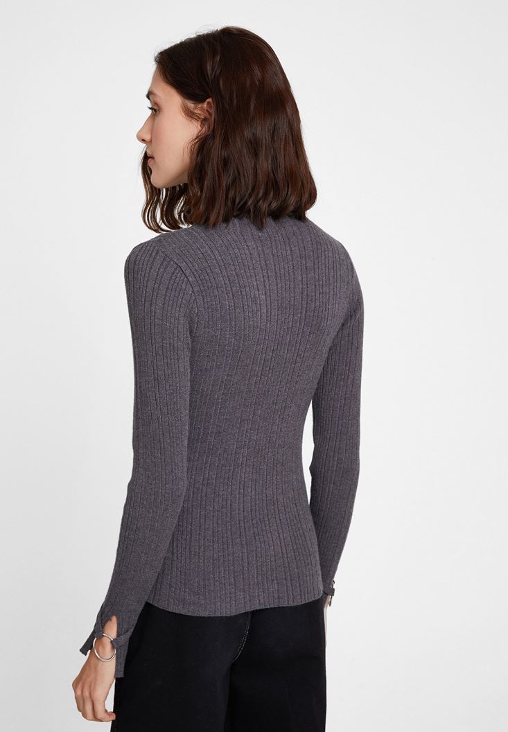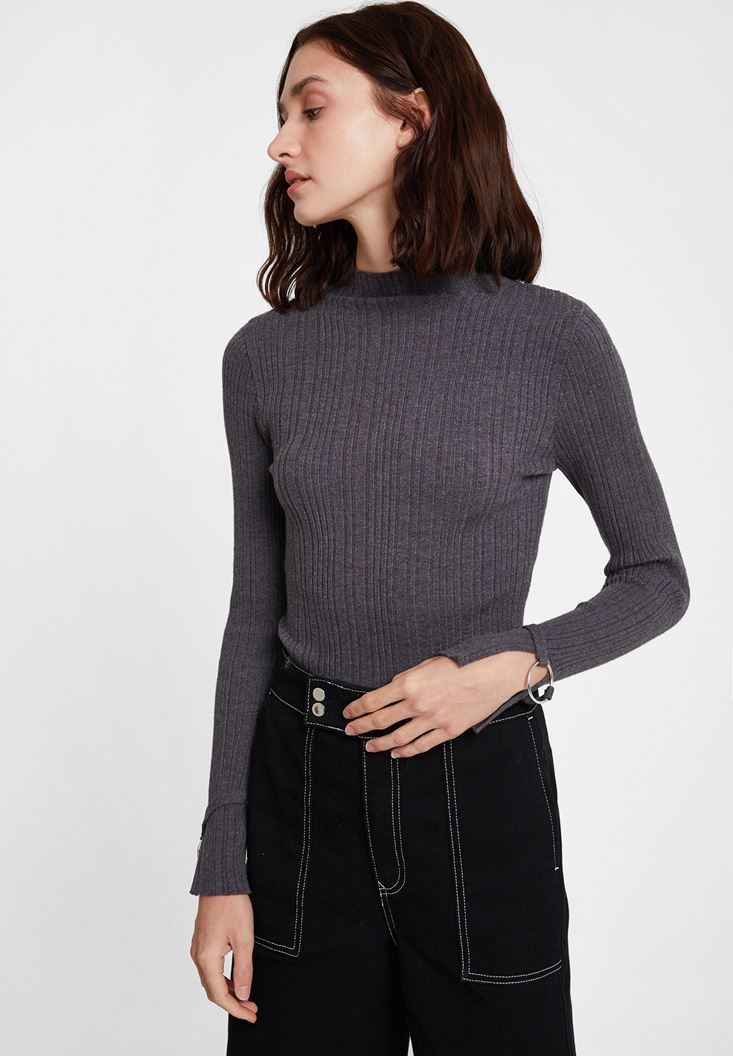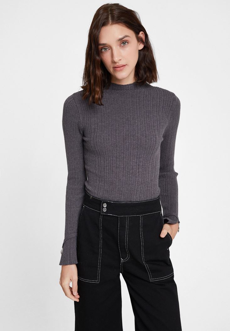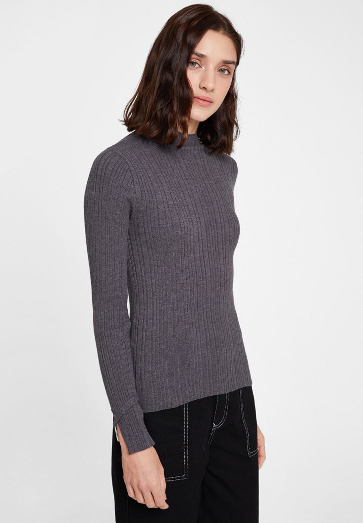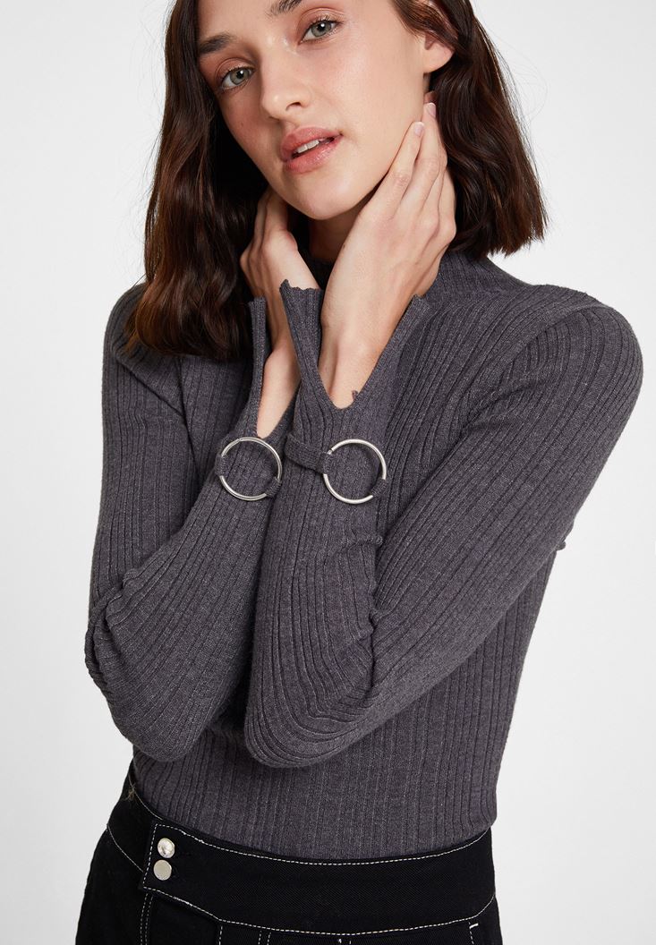 • Bayan Gri Kol Detaylı Balıkçı Yaka Triko