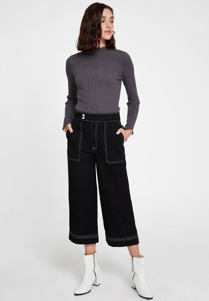 Gri Kol Detaylı Balıkçı Yaka Triko