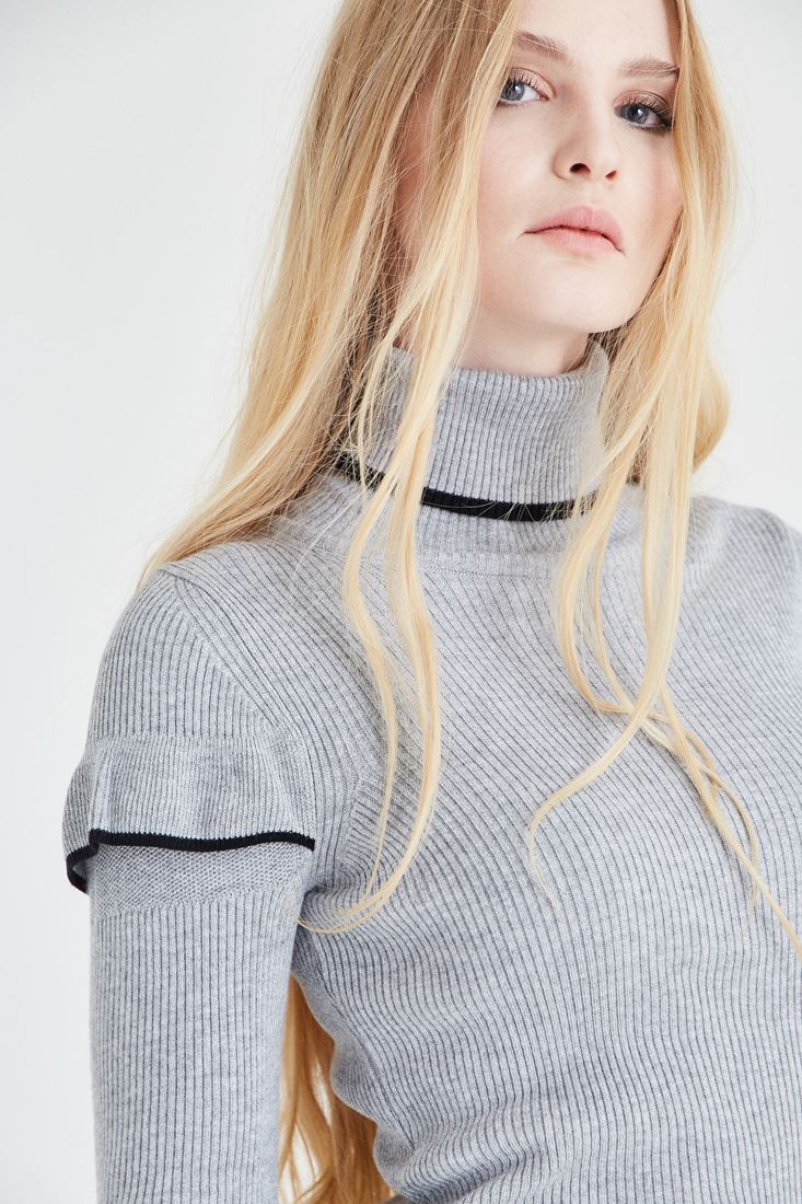 Volanli kollar bu senenin trendleri arasinda yer aliyor. Bogazli triko kazak modellerinde de gördügümüz volan kol detaylari çok sik görünüyor. Boru paça klasik pantolon modelleri ve kaban modelleri ile kombinlendiginde çok sik görünecegin kazak modelleri OXXO'da!
