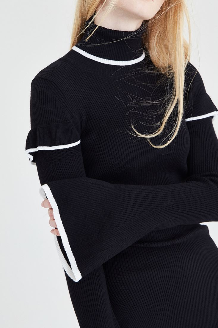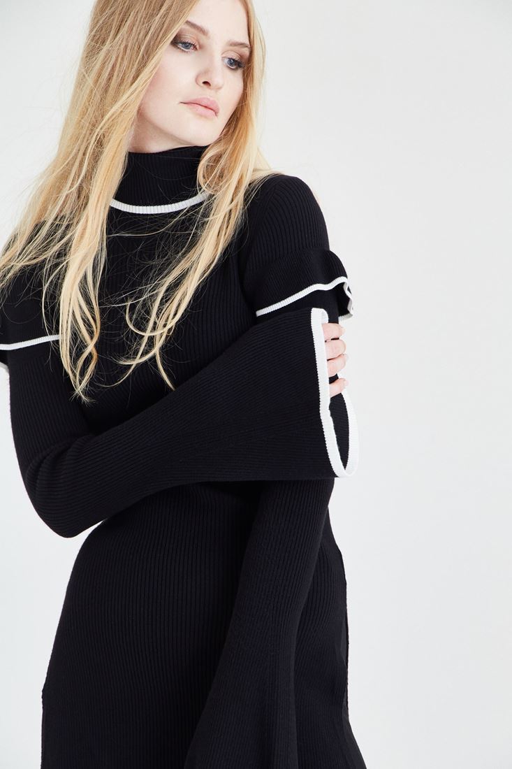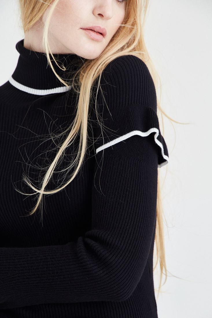 • Bayan Siyah Kol Detaylı Boğazlı Kazak