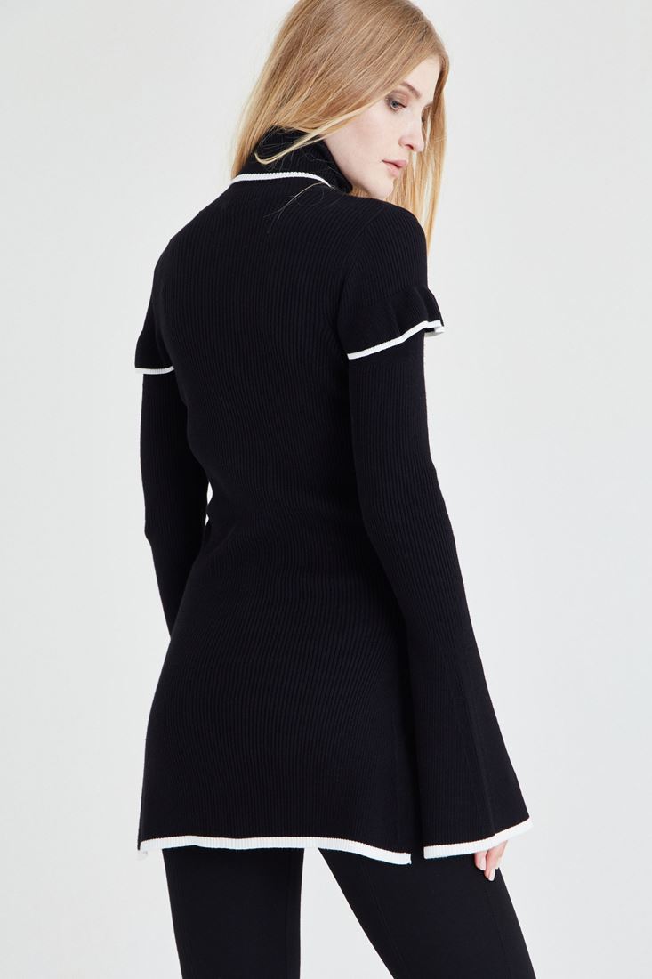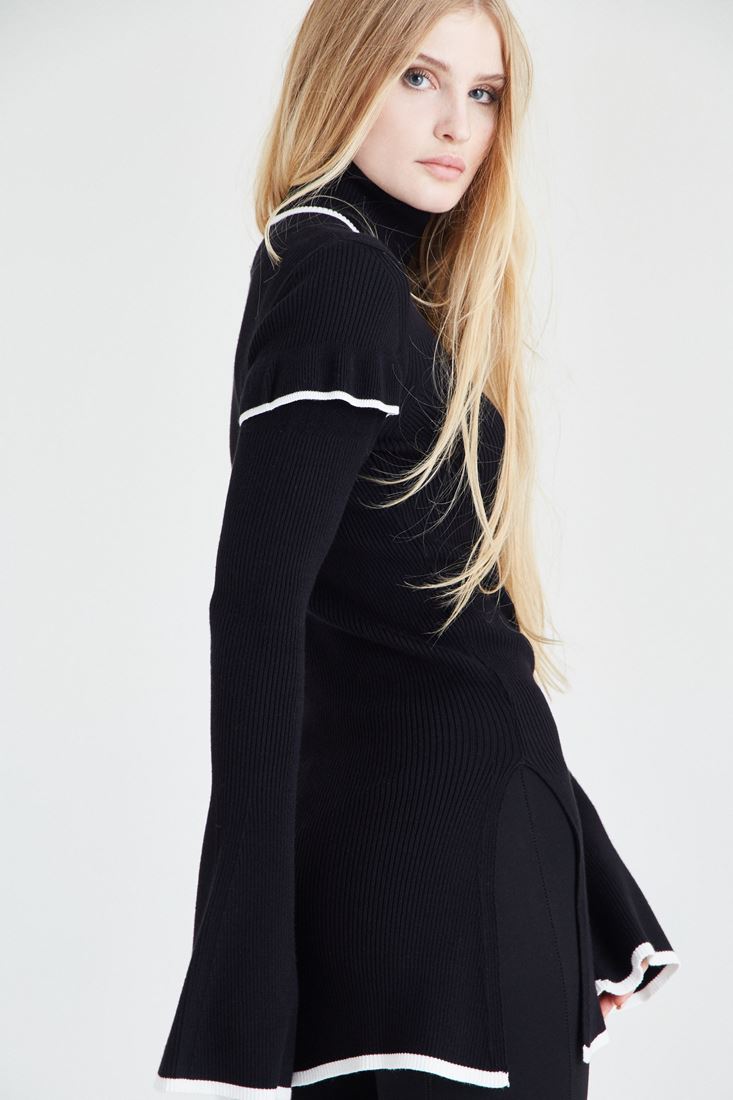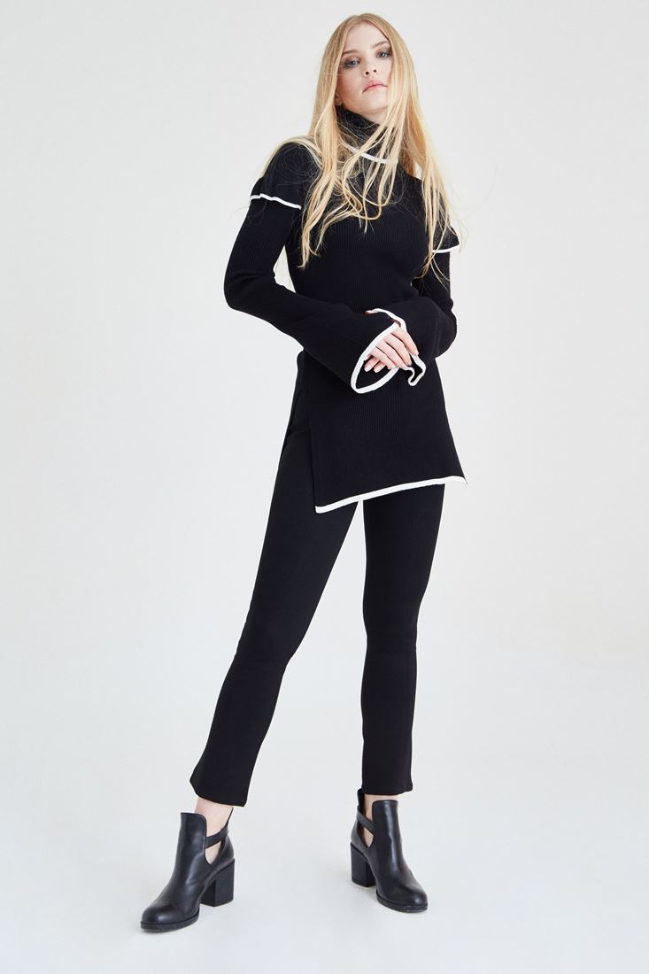 Siyah Kol Detaylı Boğazlı Kazak