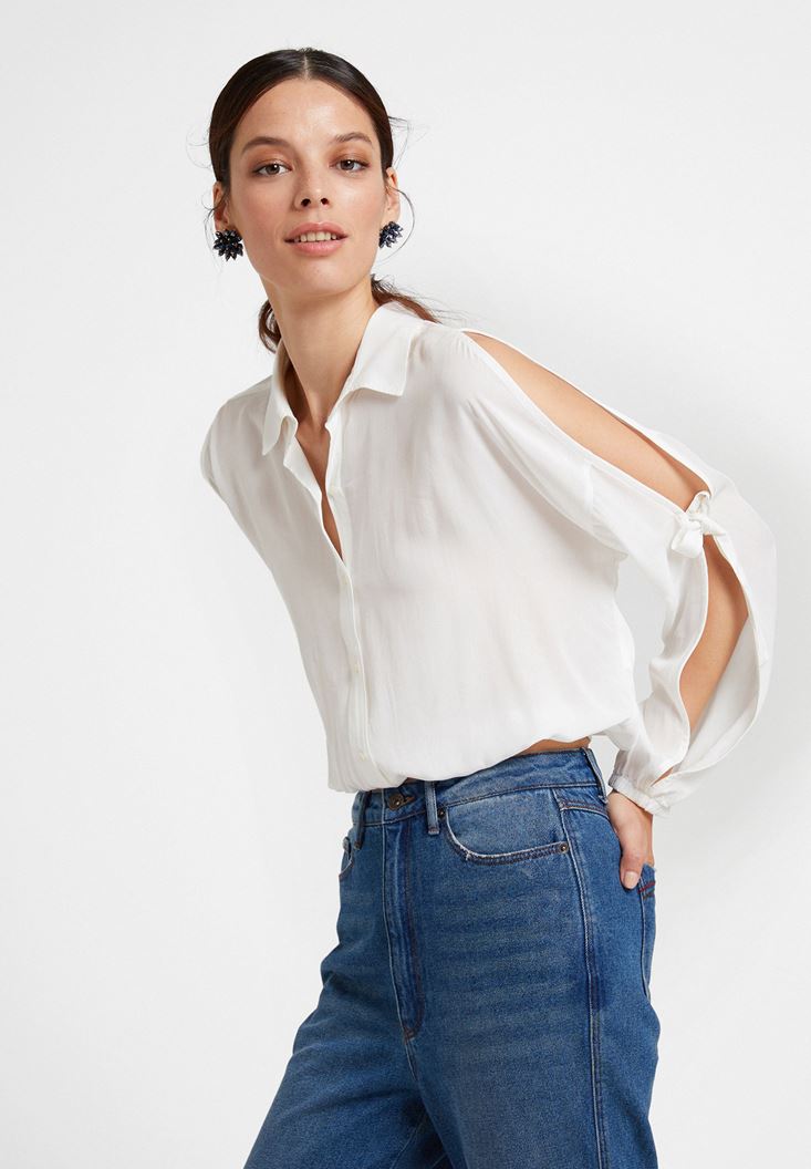 Kol Detayli Gömlek modeli detaylardan gelen sikligi basarili bir sekilde yansitirken ayni zamanda sadeligi ve zarafeti ile dikkat çekmeyi basariyor. Gömlek kesiminin enerjisini ön plana çikarmak için kullanilan kol detaylari tasarima hareket kazandiriyor. Gömlek kollarinda kullanilan ve omuzdan bilege kadar devam eden kesik detay dirsek hizasindaki kurdeleler ile tamamlaniyor. Viskon dokunun öne çikardigi konfor ve yumusaklik hissi ile hem spor hem de klasik kombinlerde tercih edebileceginiz parçalardan birisi olan tasarimi her zaman severek kullanacaksiniz. OXXO’nun kendine has ilhamini yansittigi çizgileri ile ön plana çikan gömlek modeli ile özgün tarzinizi yansitirken ayni zamanda her zaman konforlu hissetmenin tadini çikaracaksiniz.