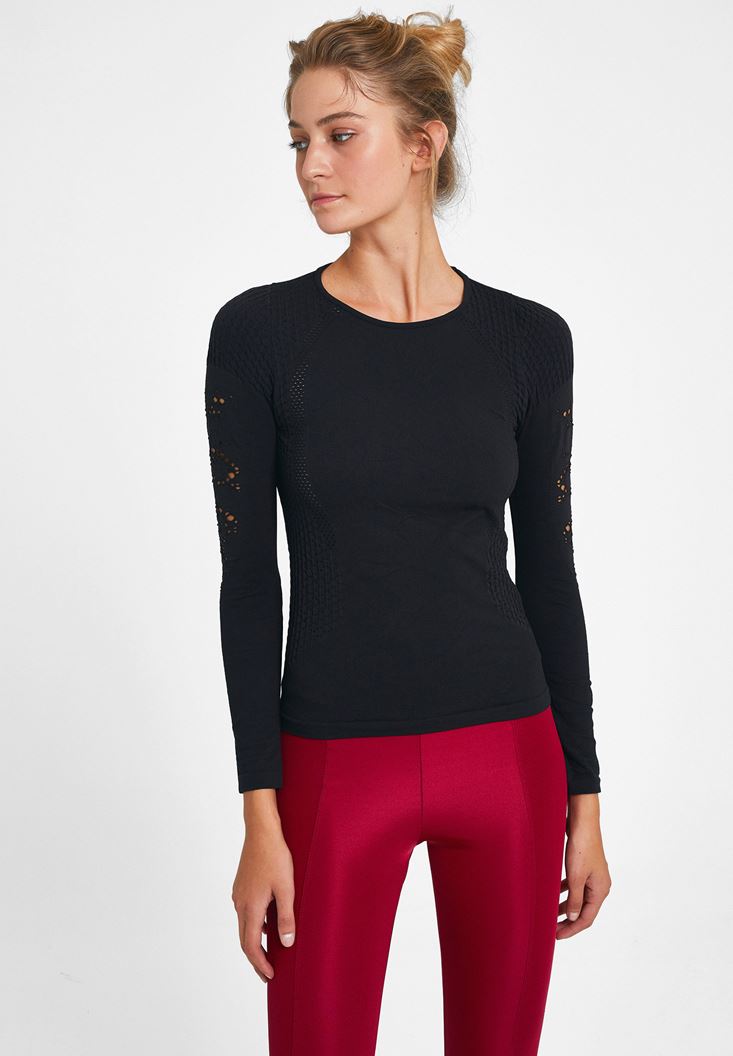 • Bayan Siyah Kol Detaylı Spor Tişört