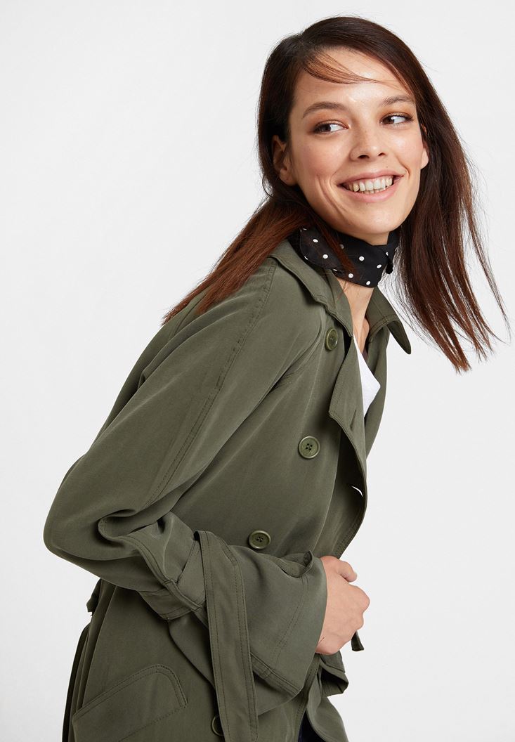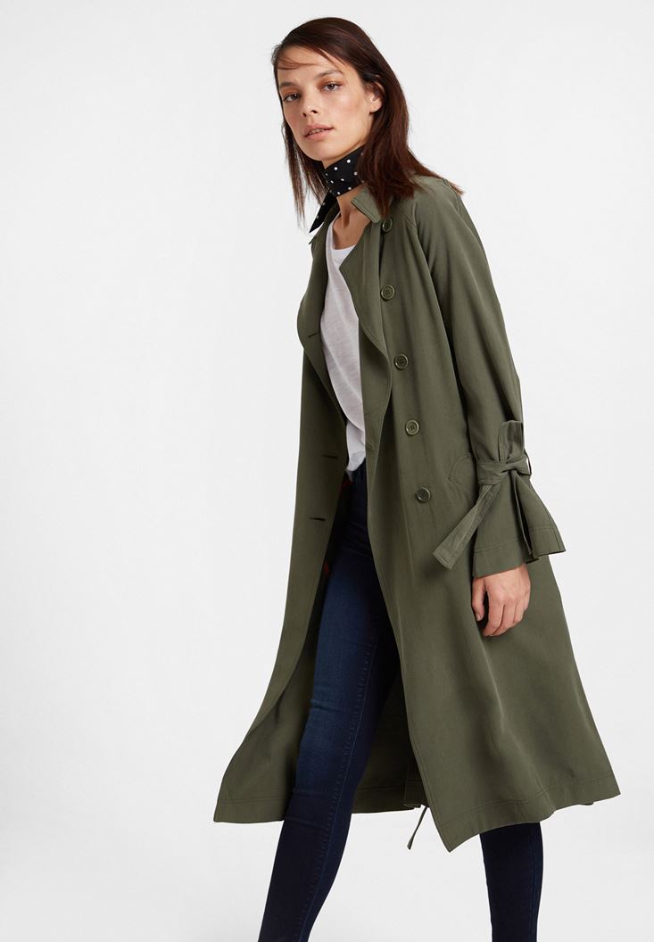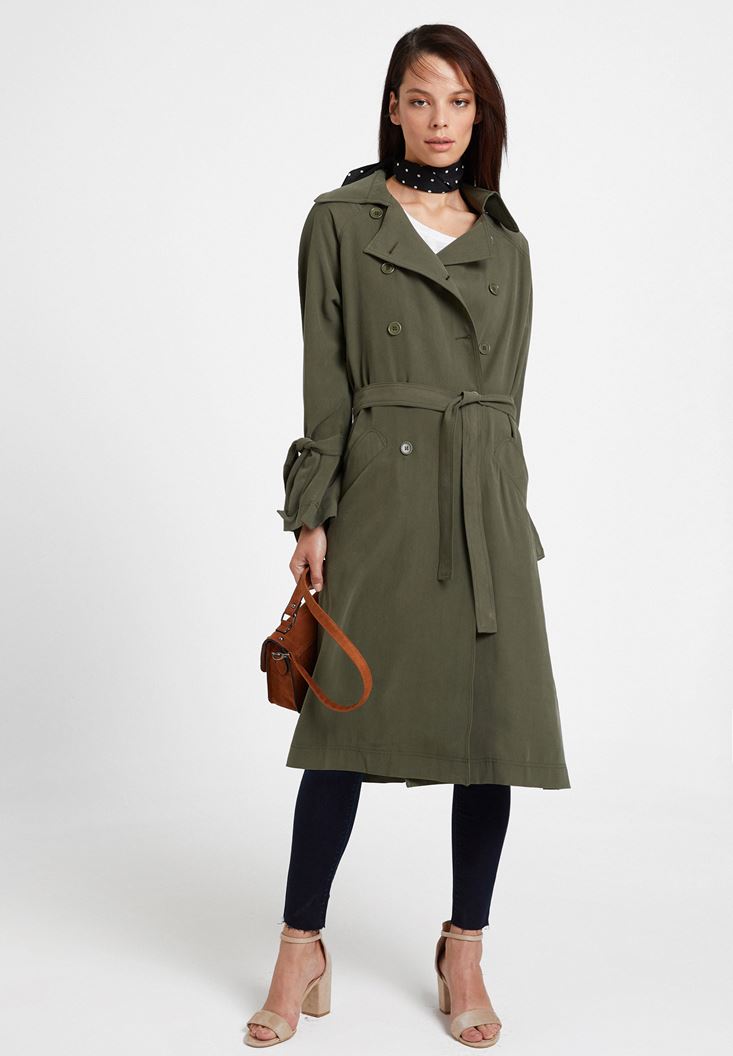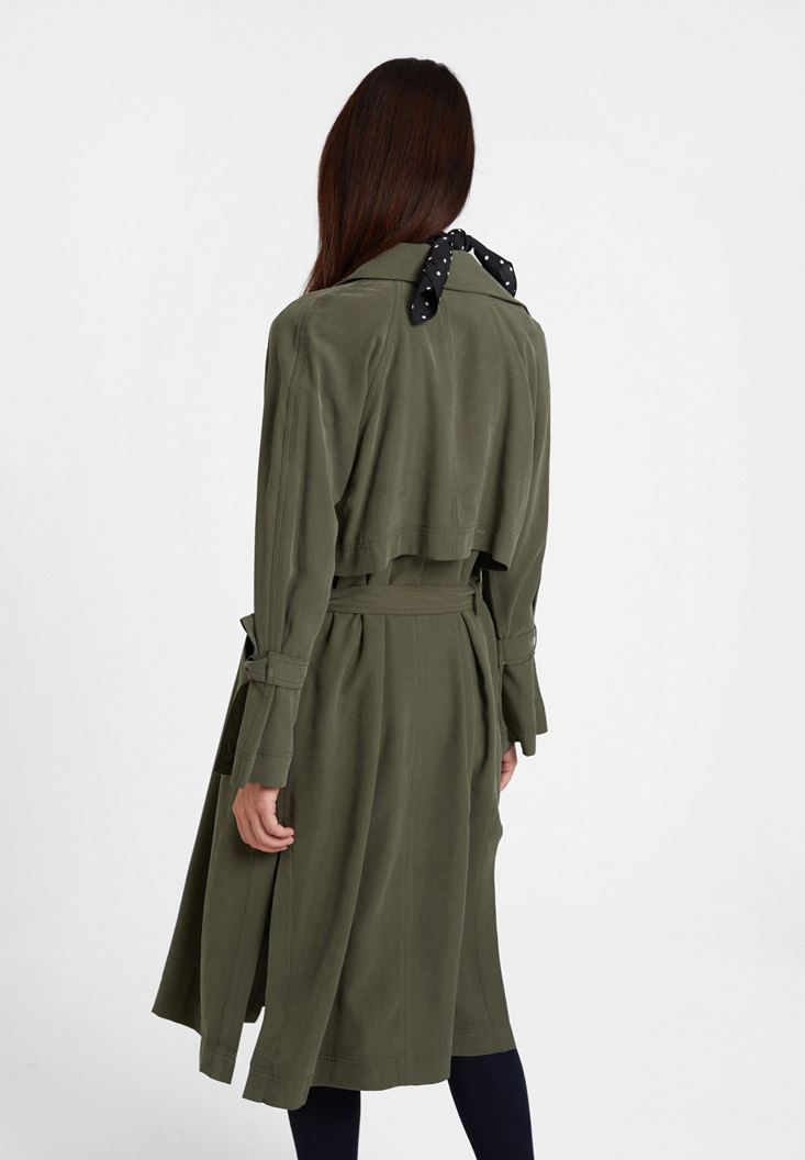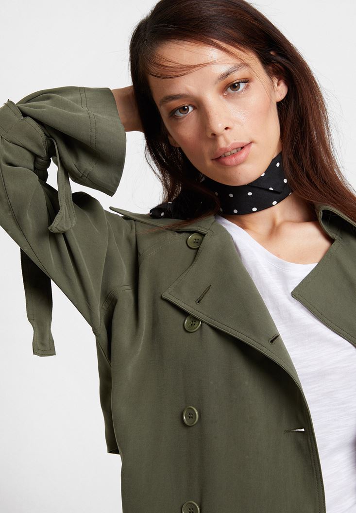 • Bayan Yeşil Kolları Bağlama Detaylı Trençkot