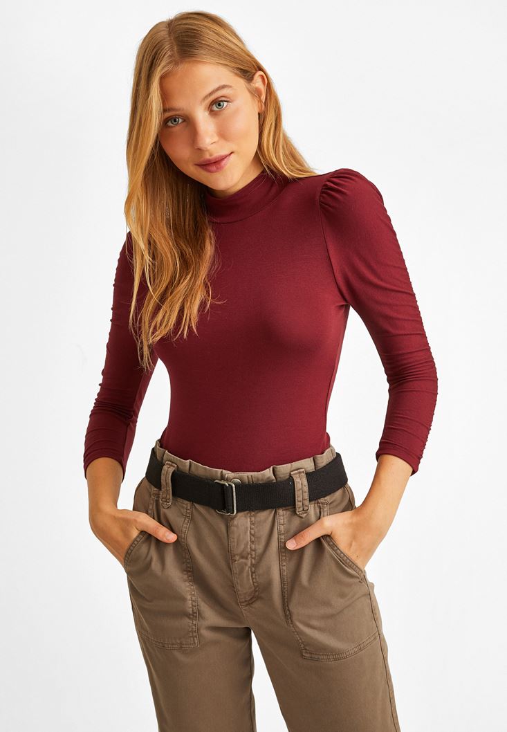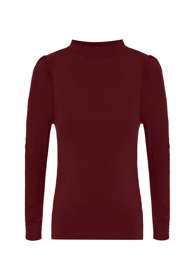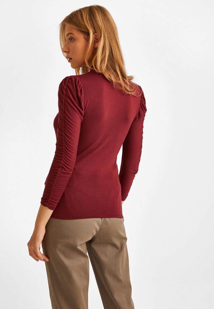 Bordo Kolları Büzgü Detaylı Bluz