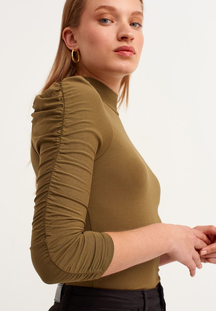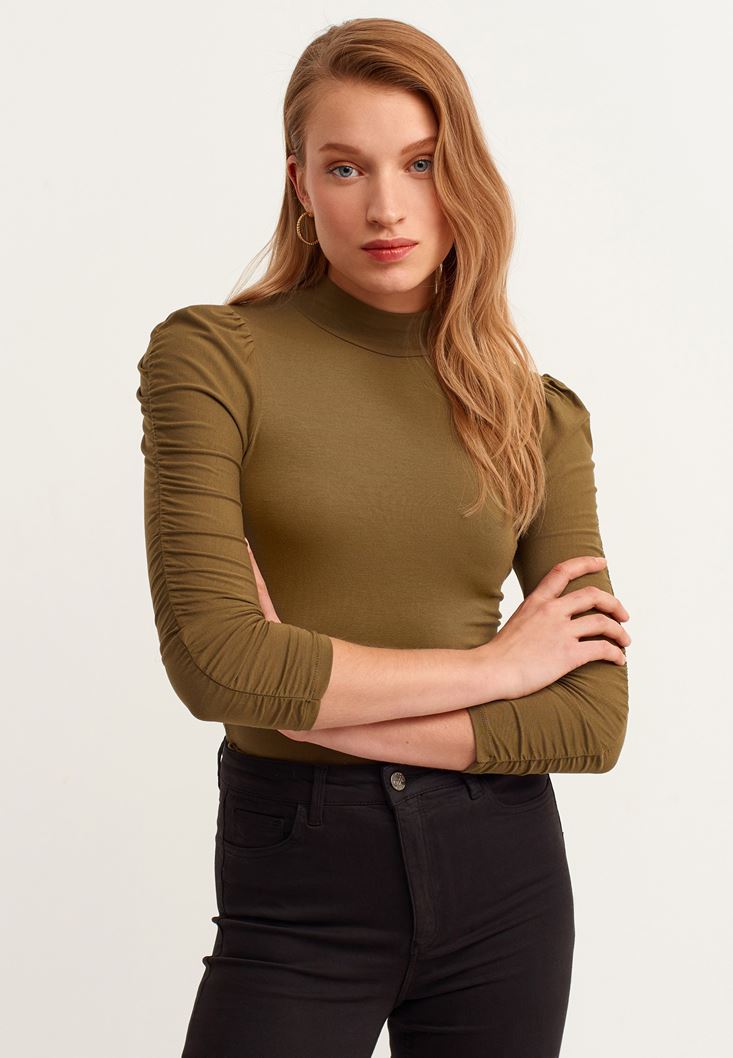 Yeşil Kolları Büzgü Detaylı Bluz