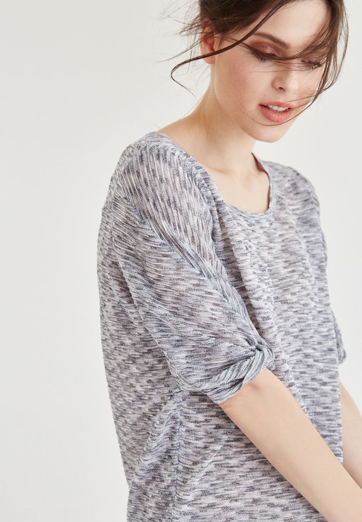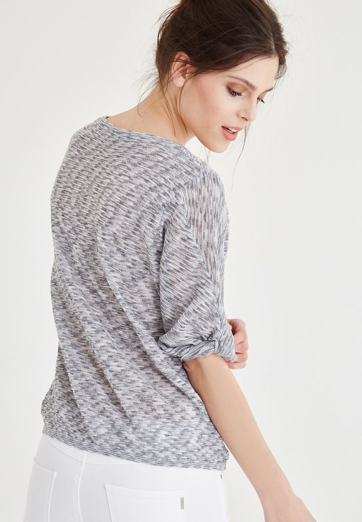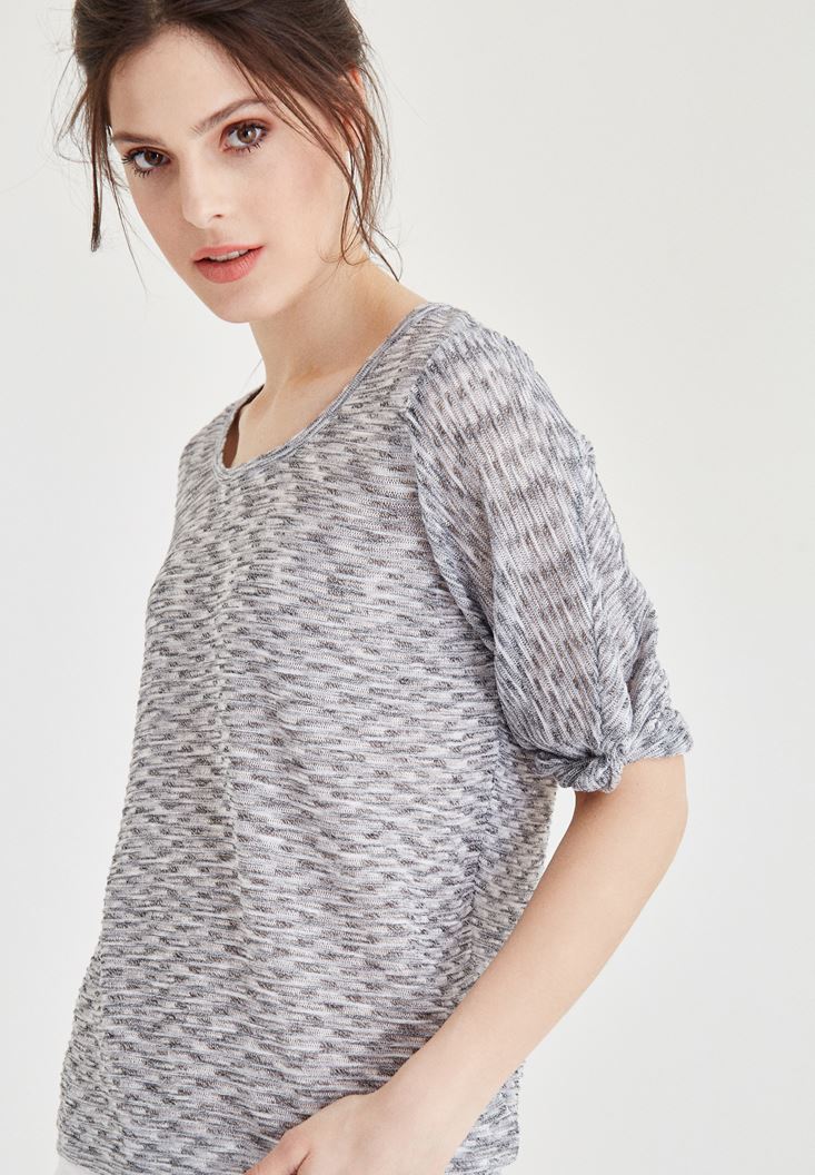 • Bayan Gri Kolları Büzgülü U Yaka Triko