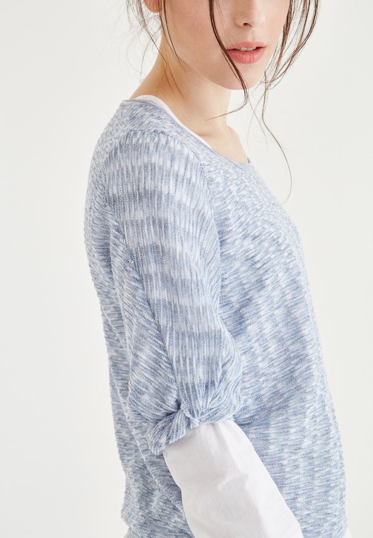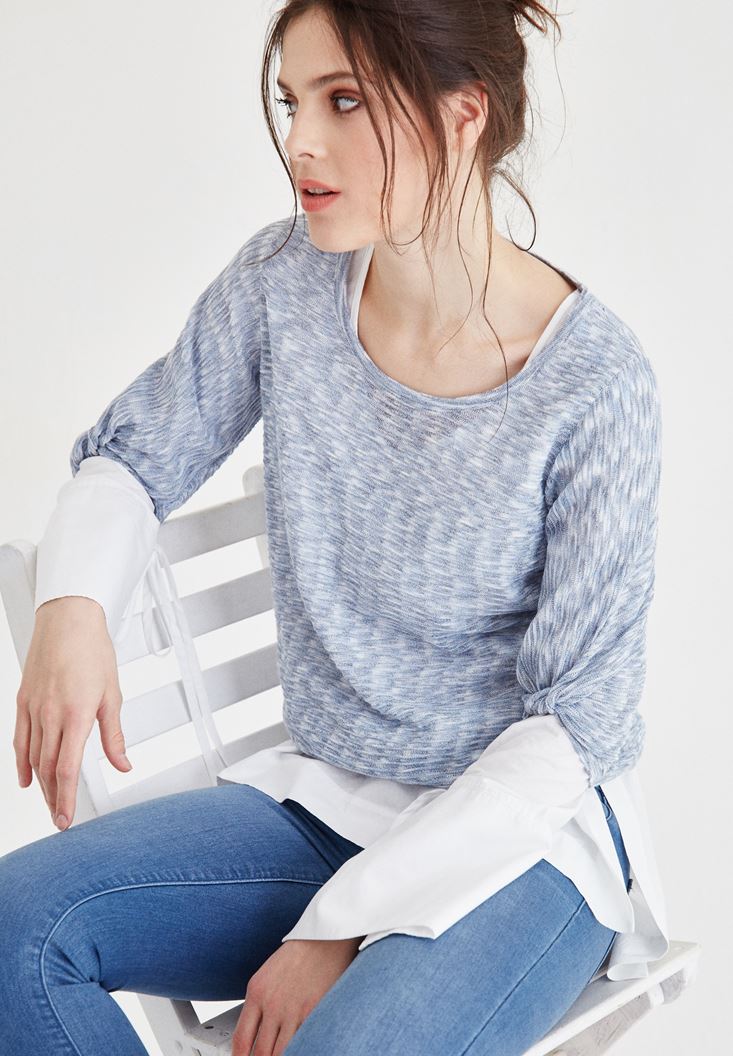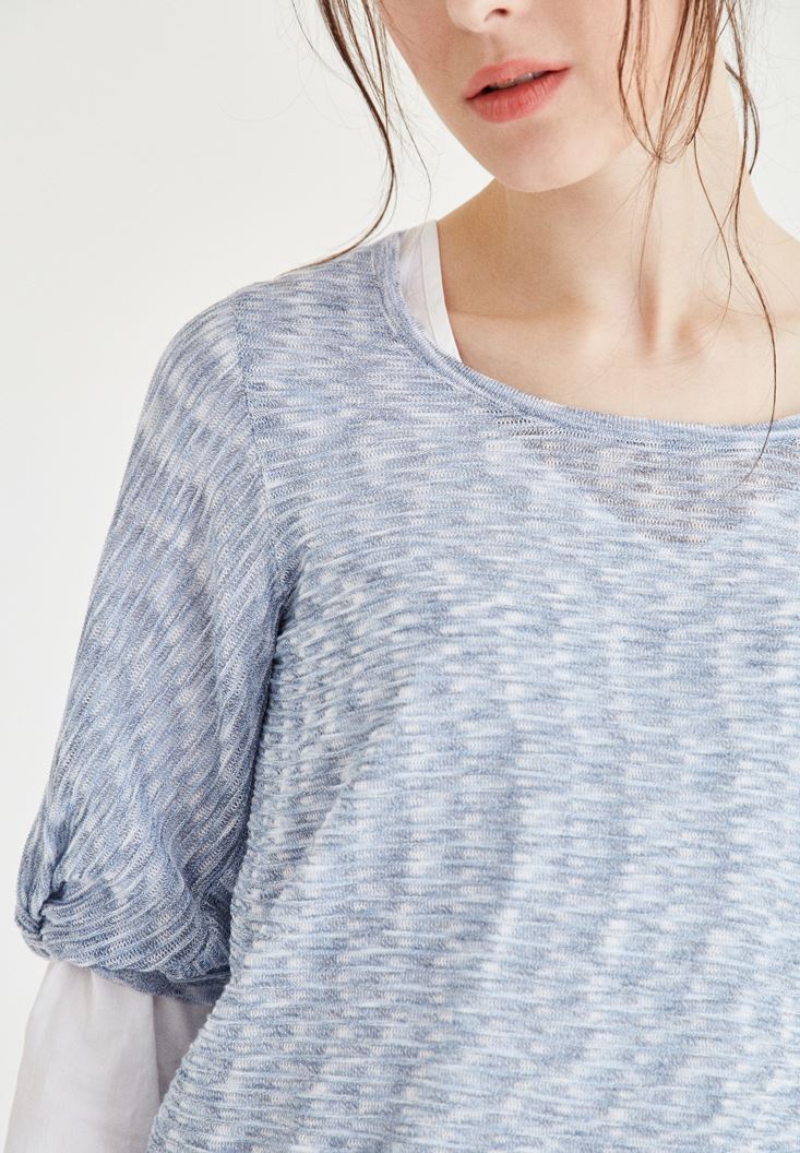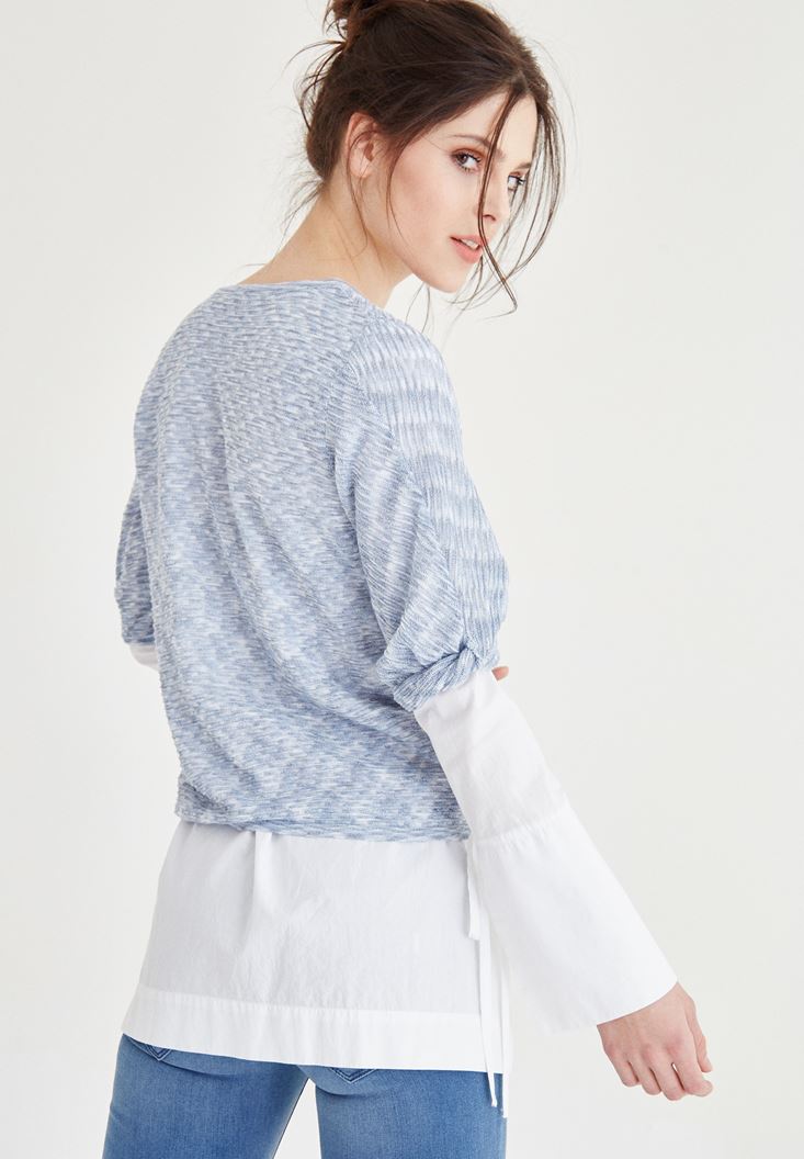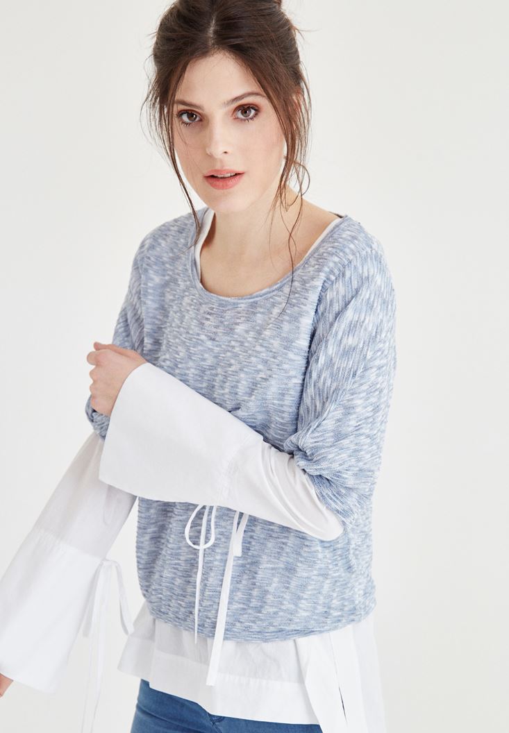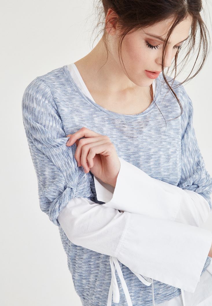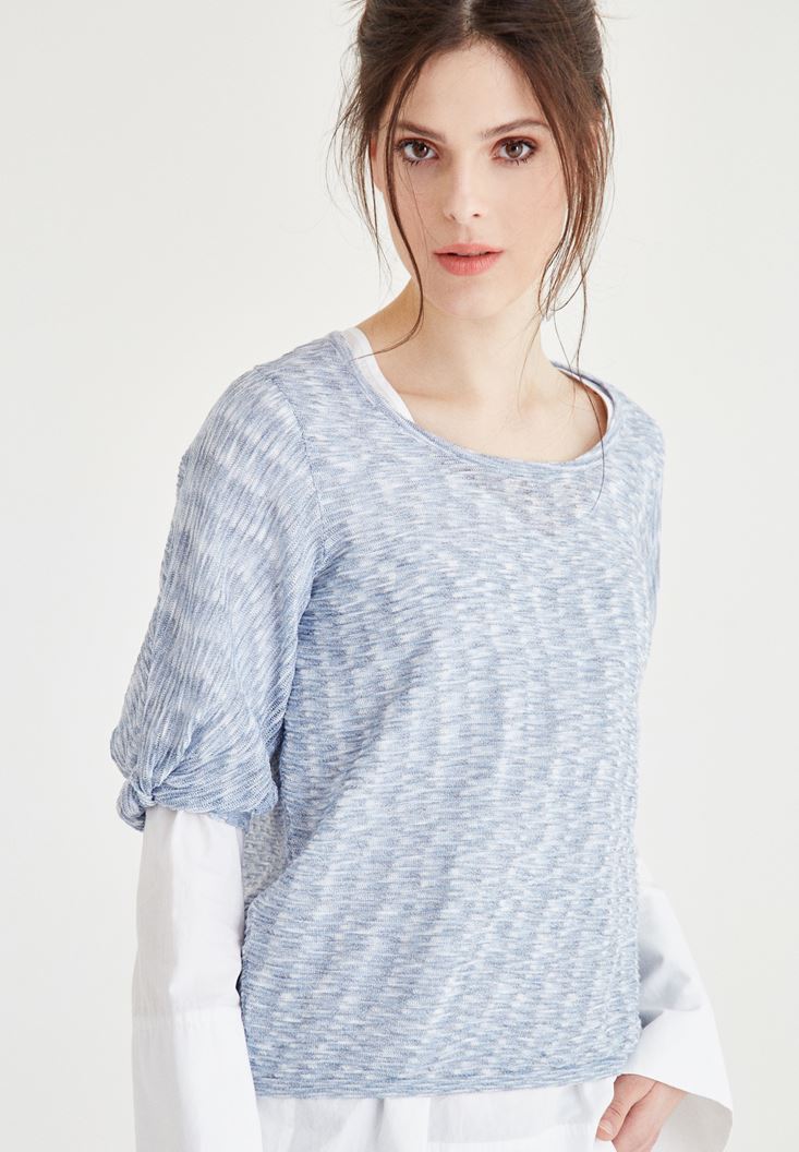• Bayan Mavi Kolları Büzgülü U Yaka Triko