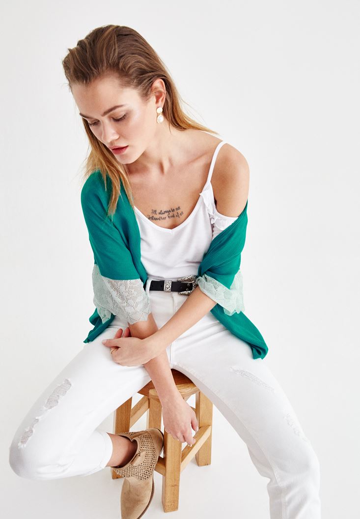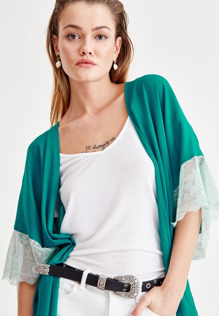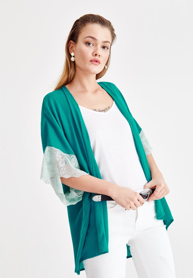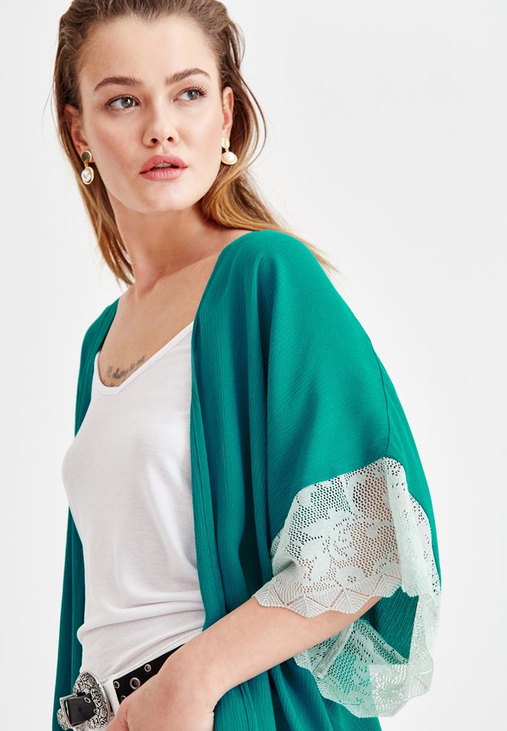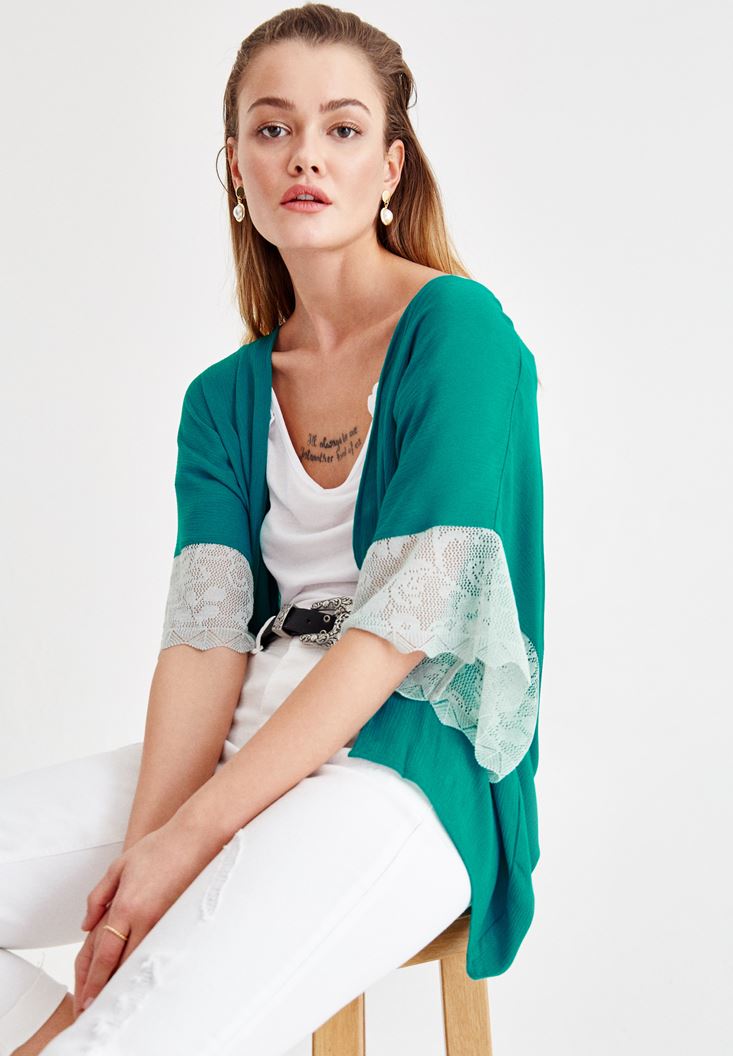 • Bayan Yeşil Kolları Dantel Detaylı Ceket