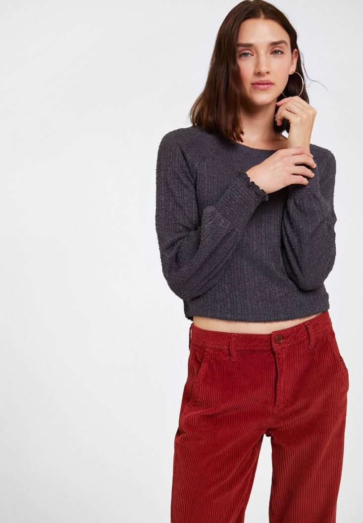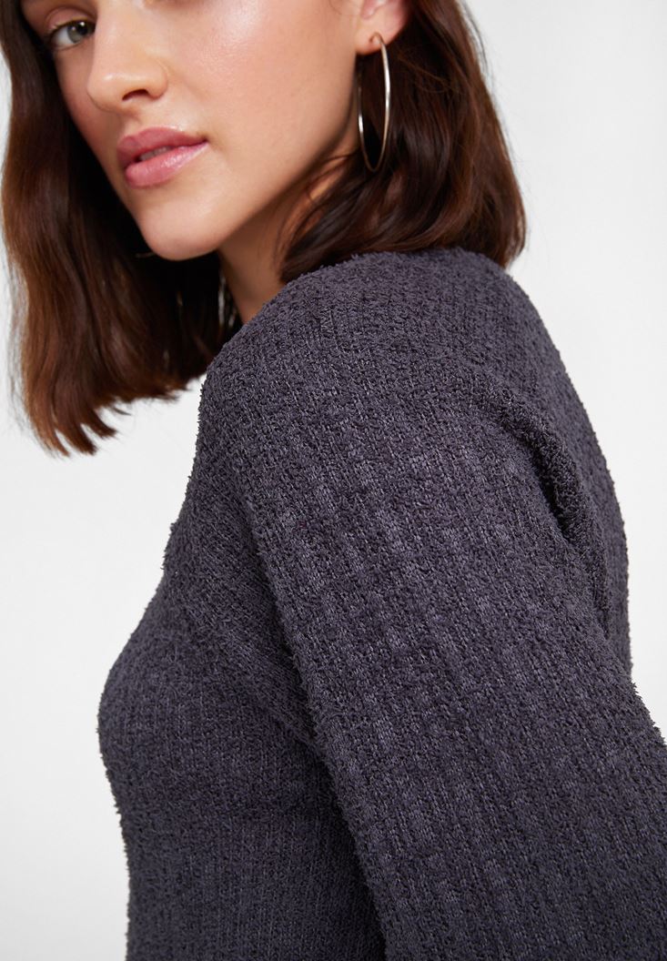 • Bayan Gri Kolları Detaylı Triko