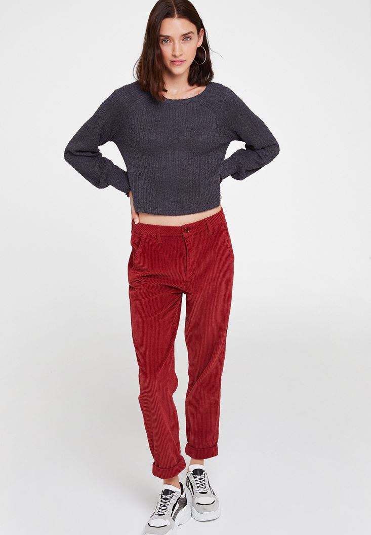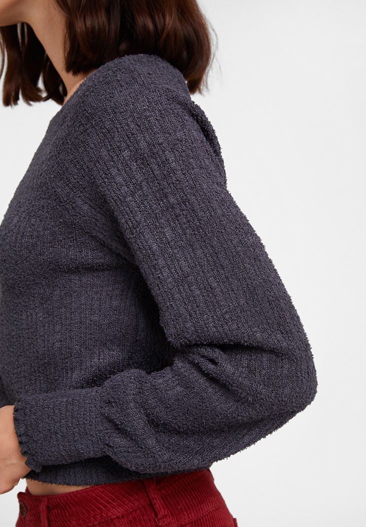 Gri Kolları Detaylı Triko