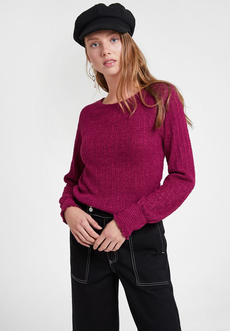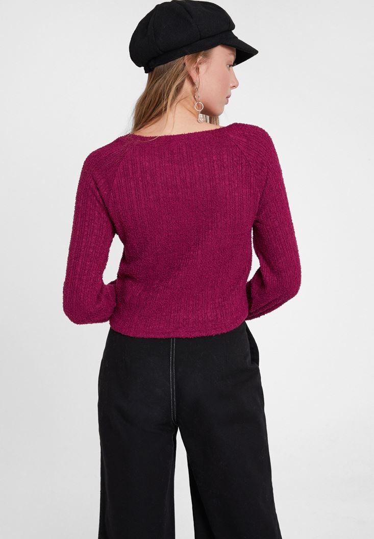 Kolları Detaylı Triko kesimi, dokusu ve duruşu ile kendine has bir görünüme sahip. Bu parçayı günlük kombinlerden sokak modası kombinlerine kadar geniş bir yelpazede kullanmayı mümkün kılan çarpıcı detaylar ise OXXO’nun tasarım fikirlerinin sezona nasıl öncülük edeceğinin başarılı bir göstergesi. Triko modelinin kayık yaka kesimi ve lastikli kol kesimi başarılı bir uyum sunarken tasarımın kısa bel boyu da bu parçanın iddiasını ortaya koyuyor. Boyuna fitilli dokunun hakim olduğu triko modeli bu doku sayesinde üst bedeni olduğundan daha zarif ve ince gösteriyor. Yüksek ve düşük bel kesim pantolon modelleri ile birlikte kombinleyebileceğiniz triko modeli ile her zaman dikkat çekici bir görünüme sahip olabilirsiniz.