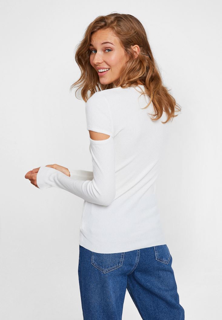 • Bayan Krem Kolları Kesik Detaylı Triko