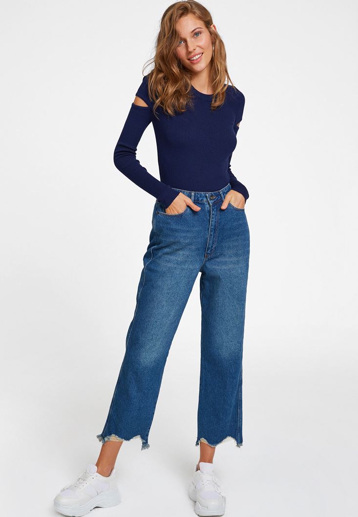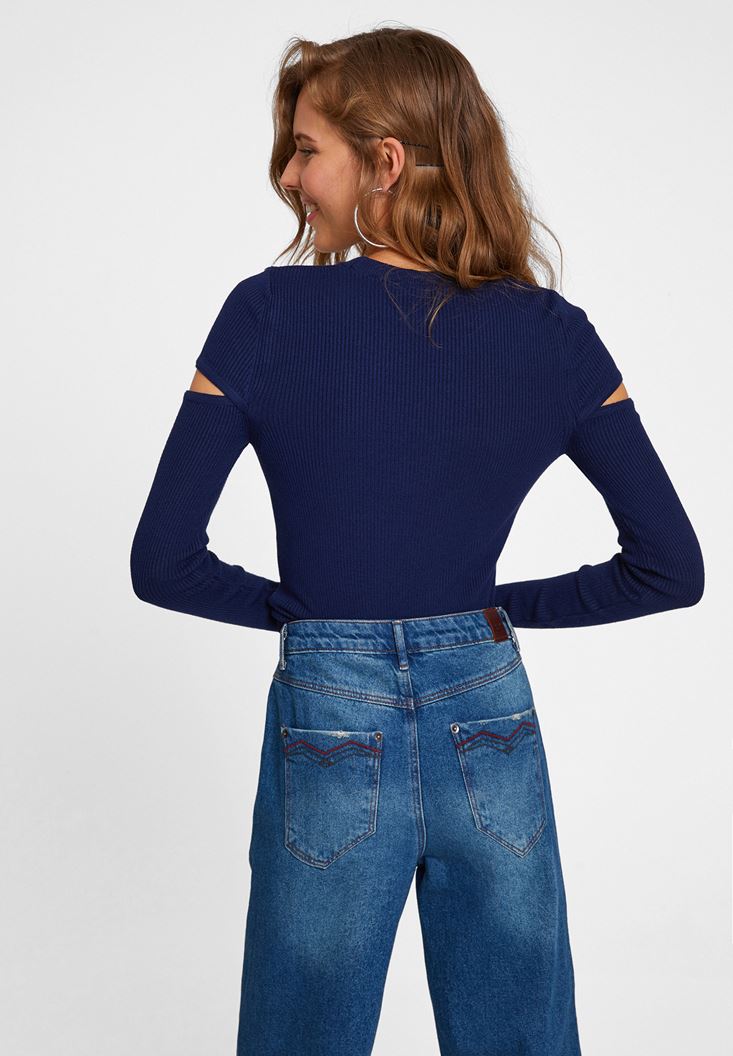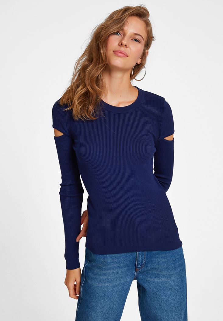 Lacivert Kolları Kesik Detaylı Triko