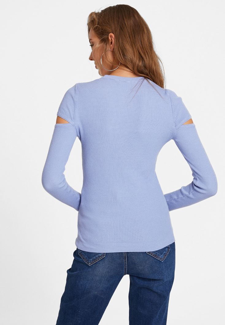 • Bayan Mavi Kolları Kesik Detaylı Triko