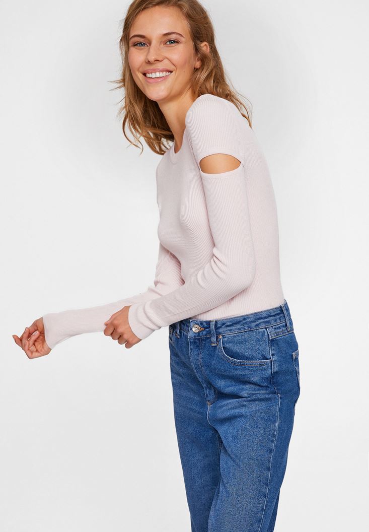Pembe Kolları Kesik Detaylı Triko