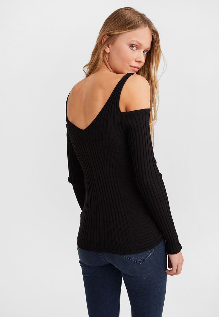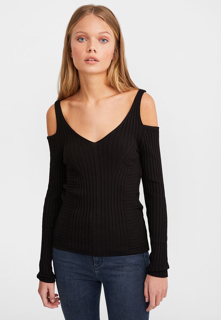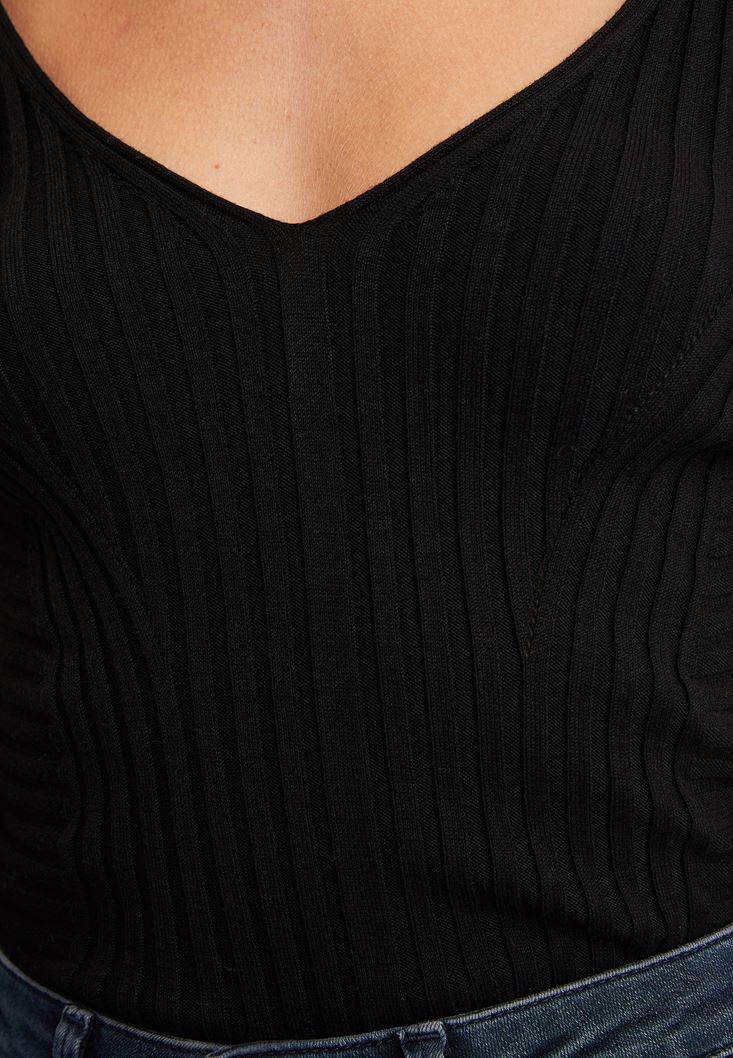 • Bayan Siyah Kolları Kesik V Yaka Triko