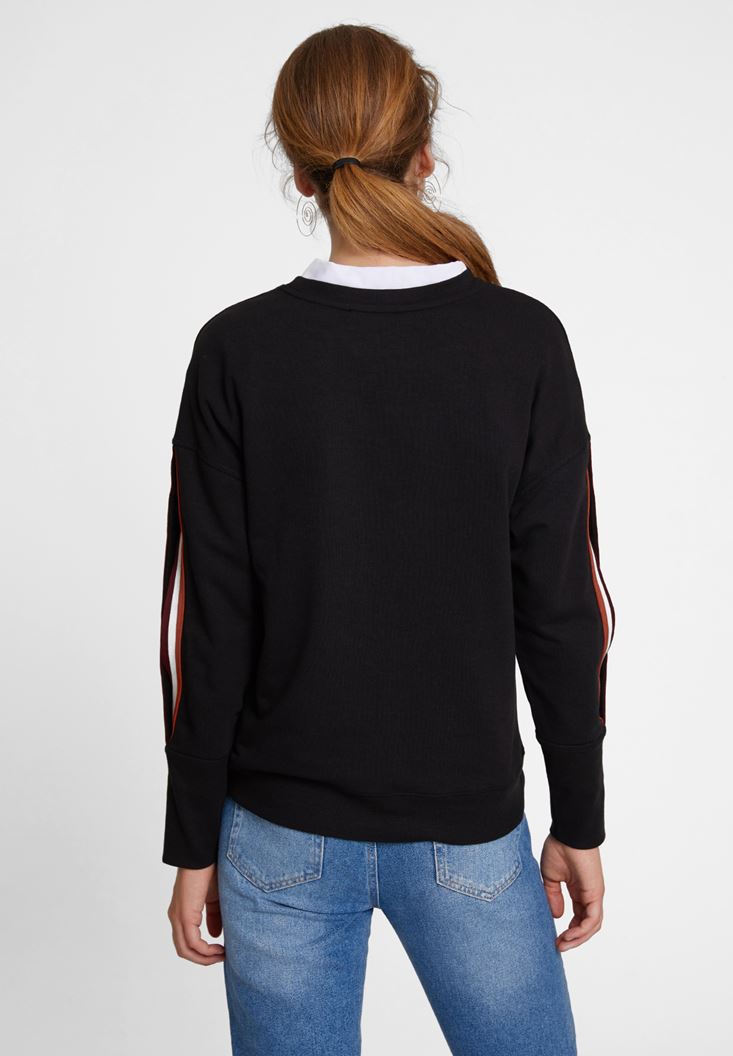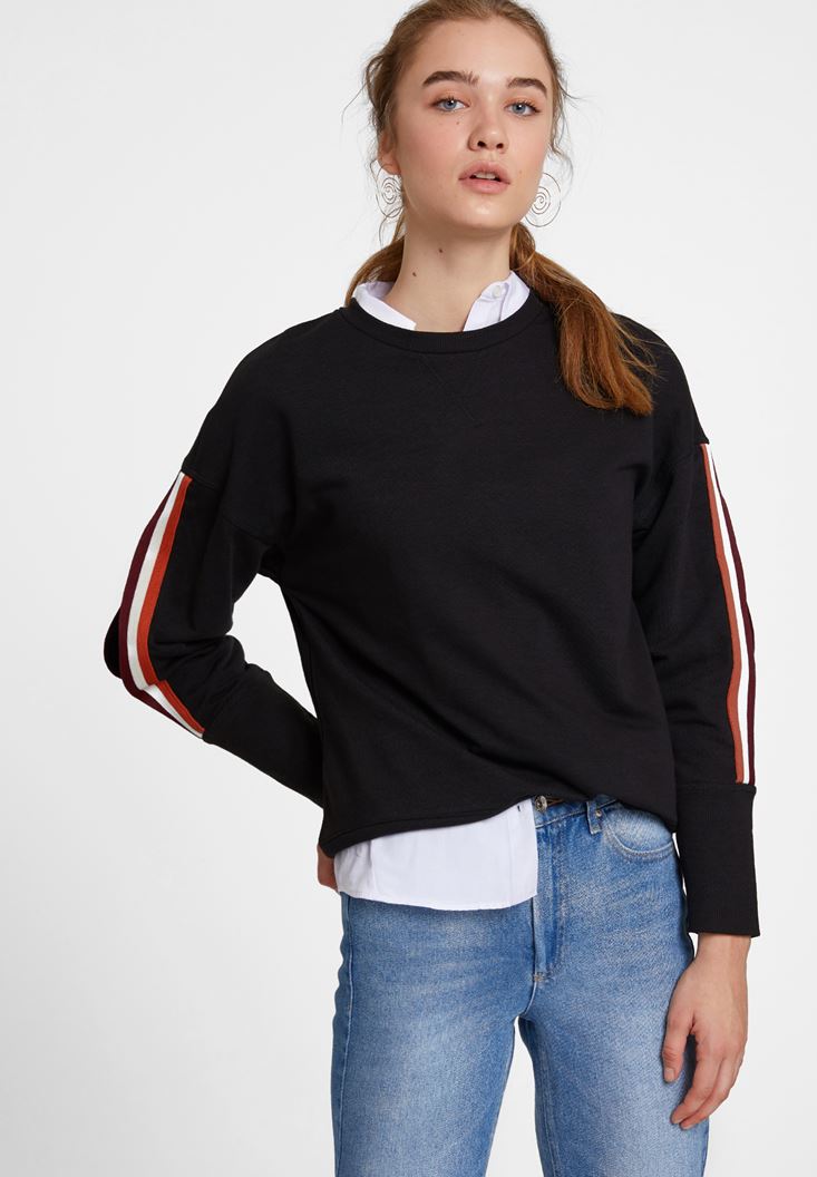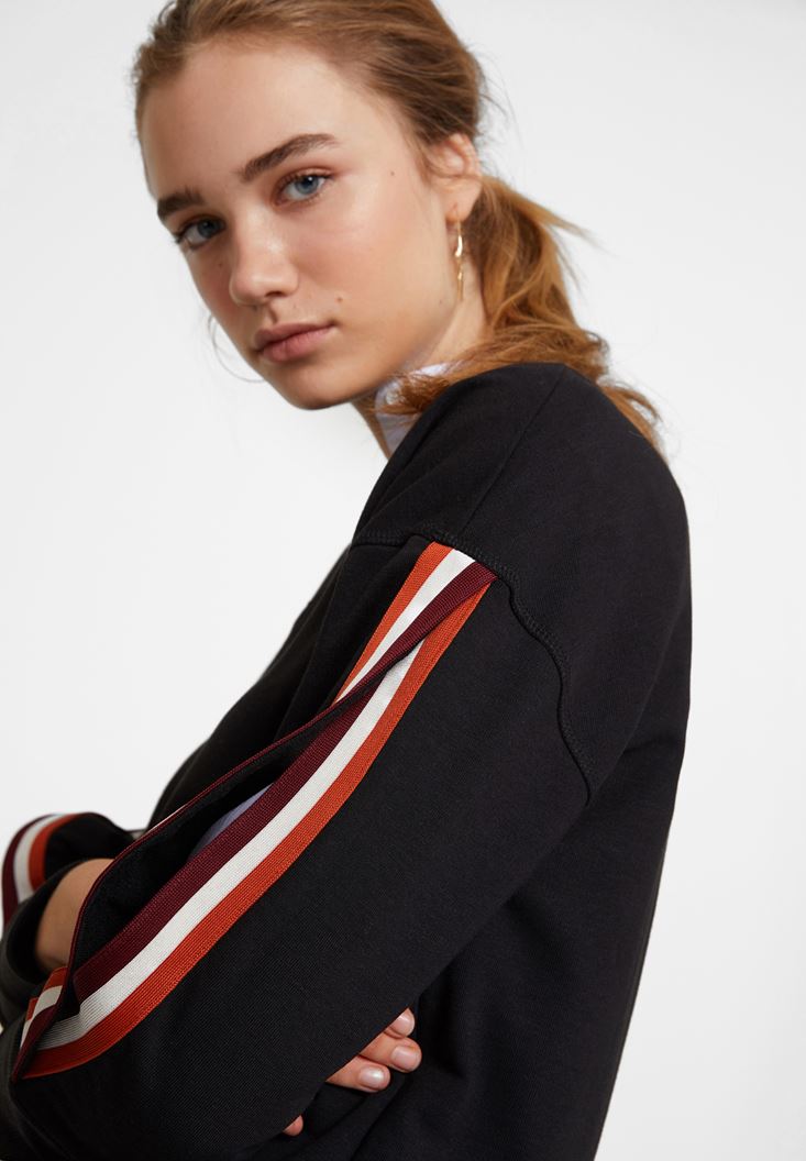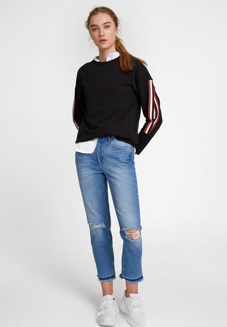 • Bayan Siyah Kolları Şeritli Sweatshirt