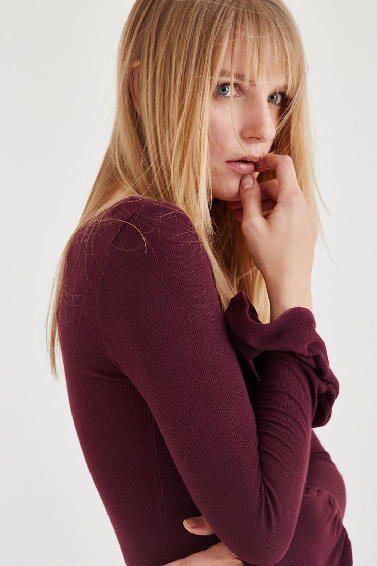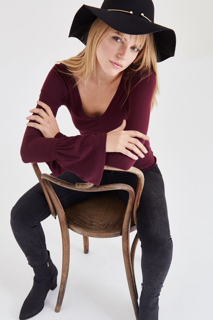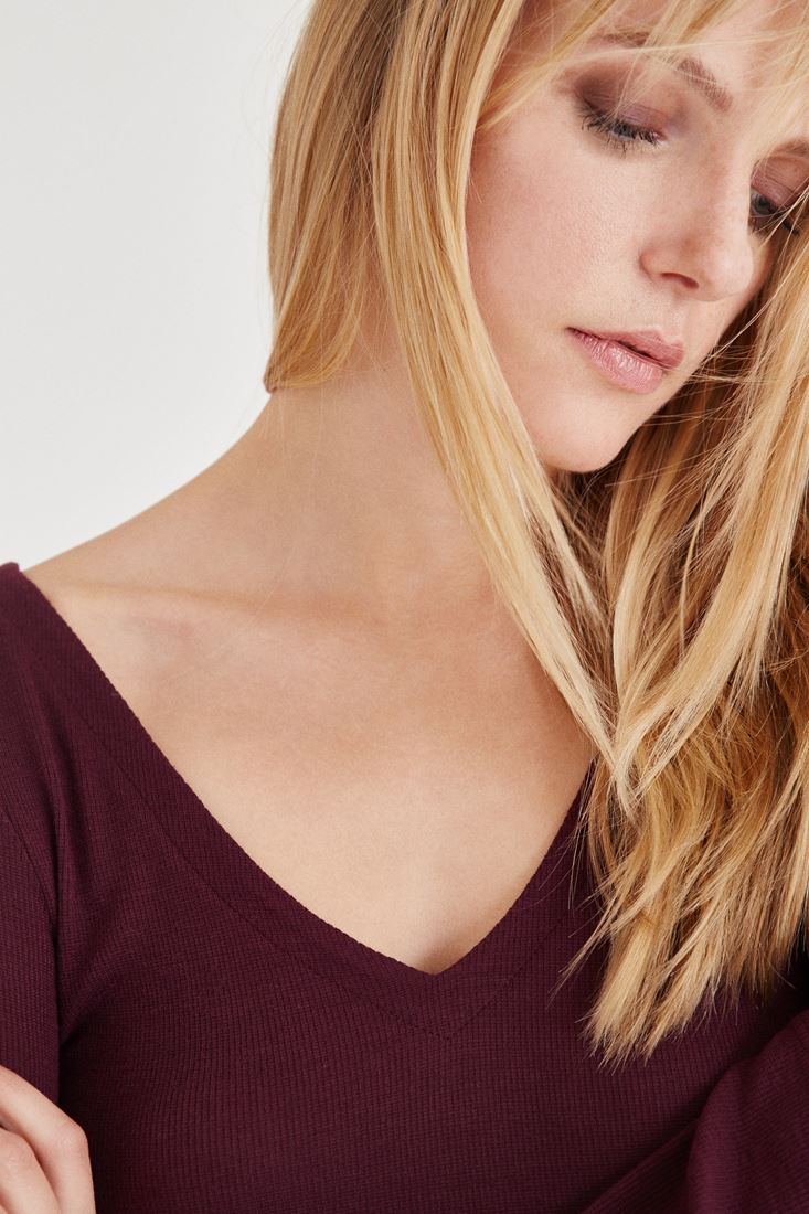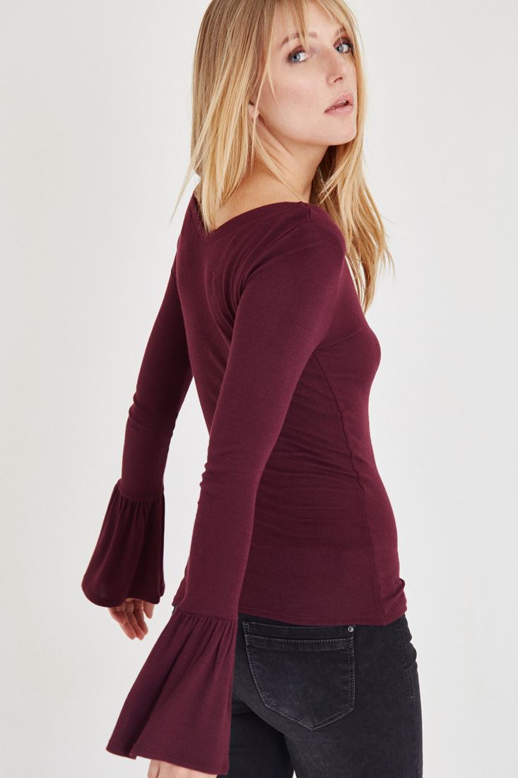 • Bayan Bordo Kolları Volan Detaylı Bluz