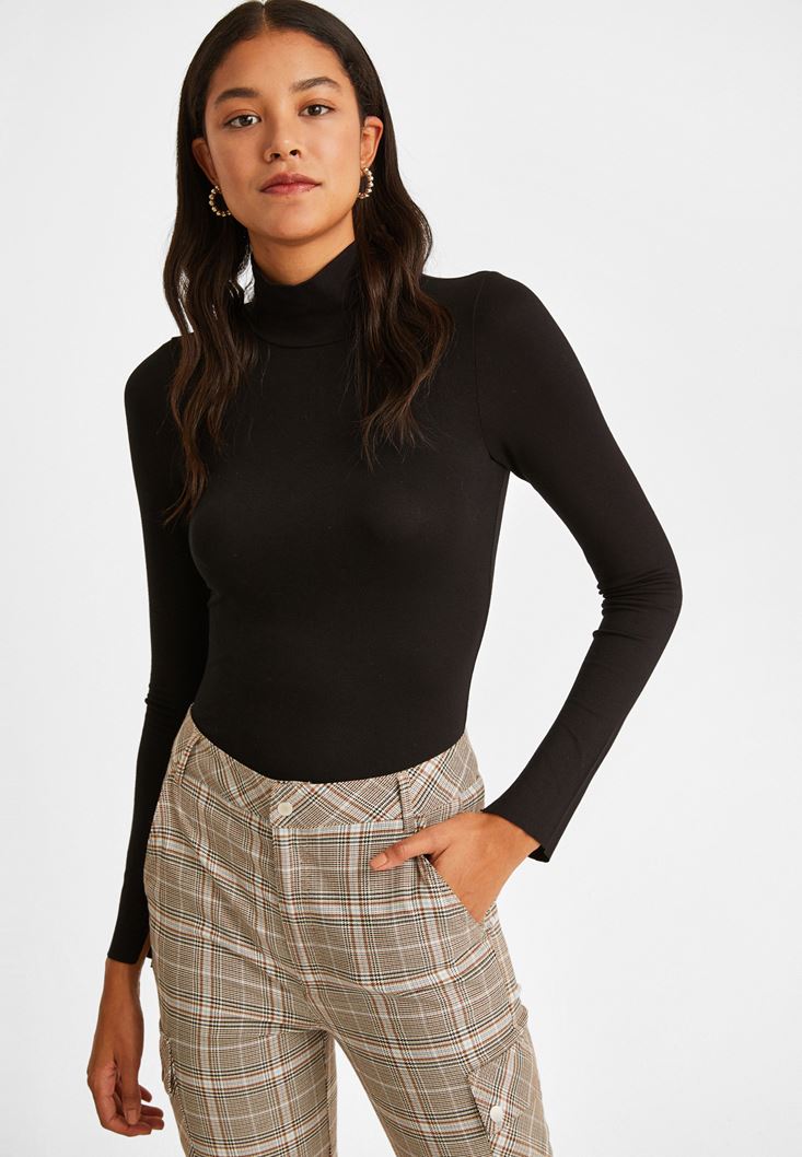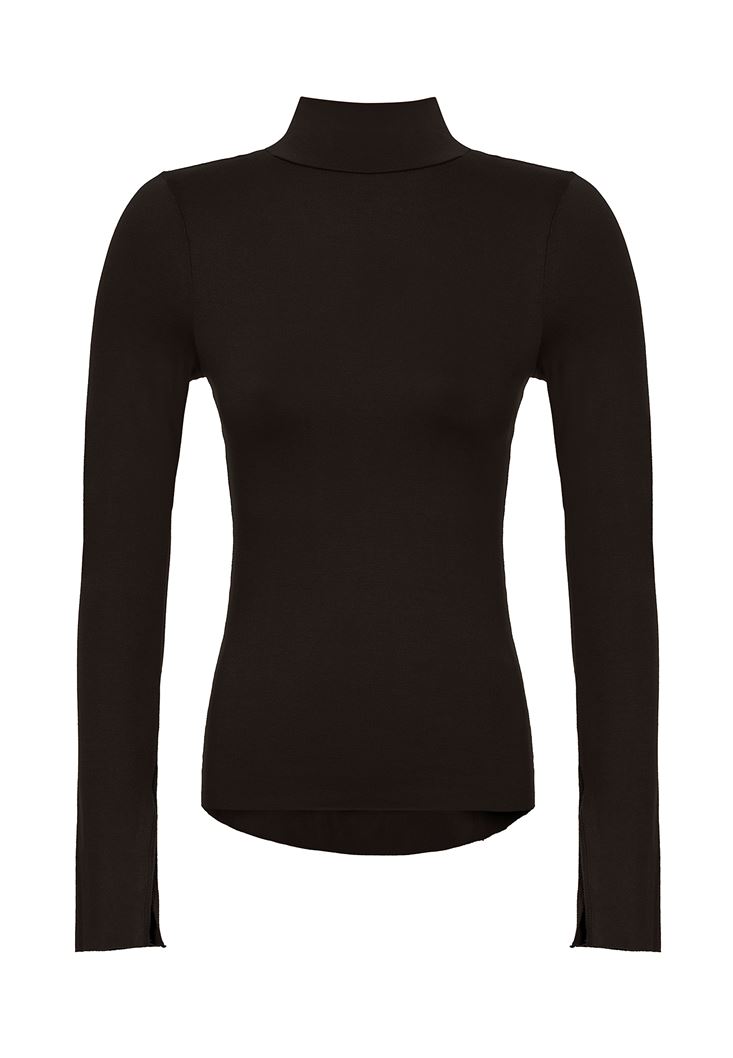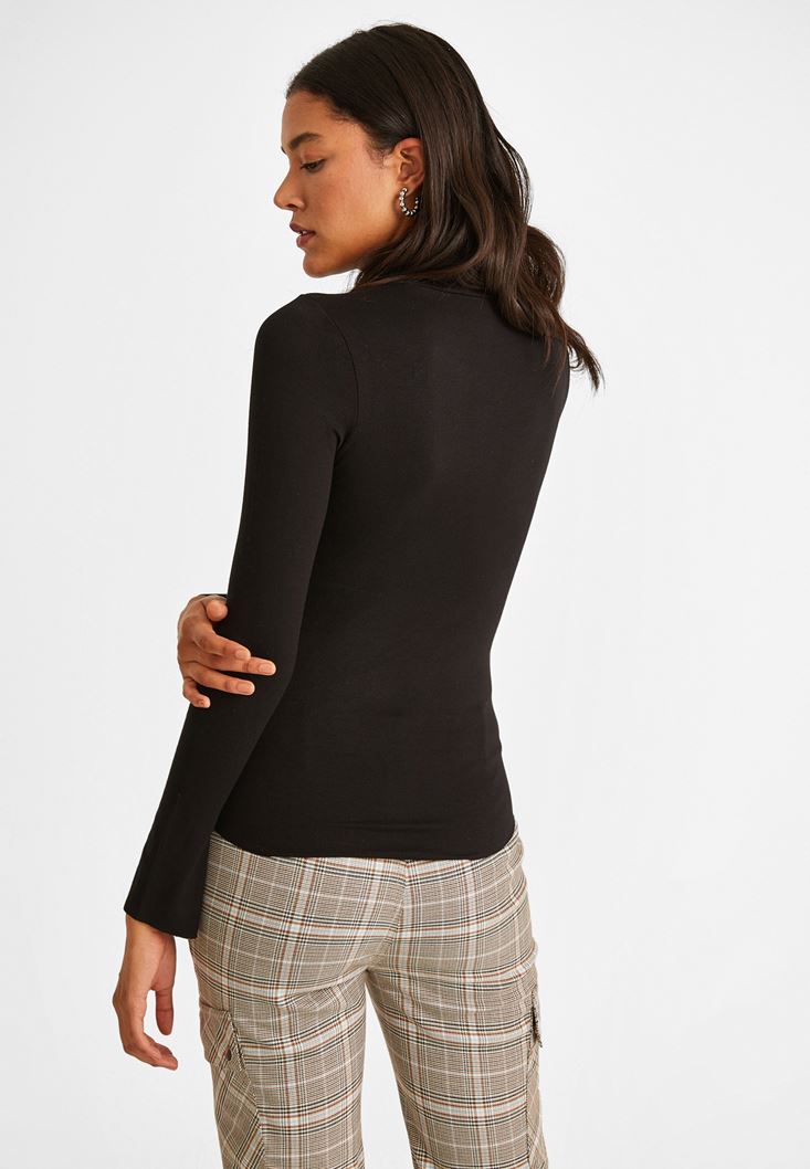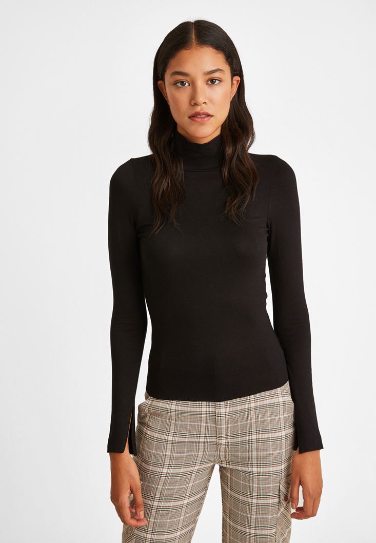 Siyah Kolları Yırtmaçlı Boğazlı Bluz