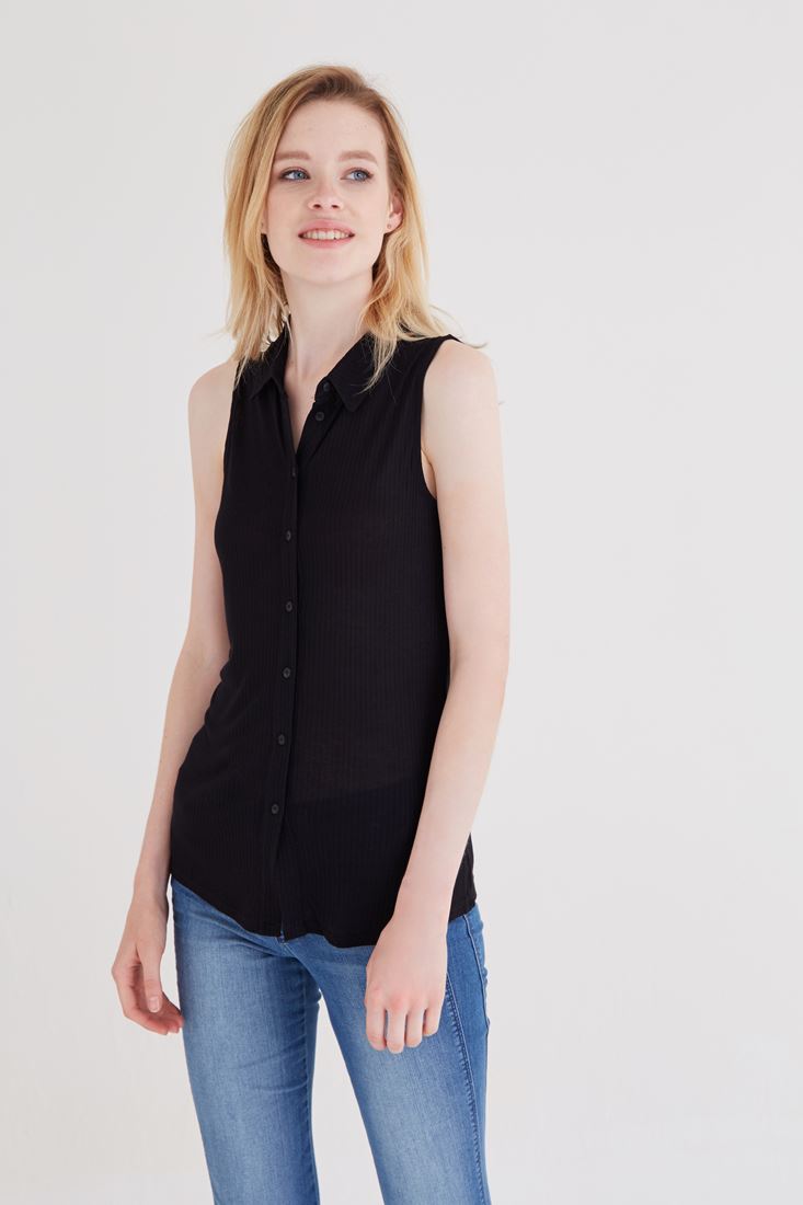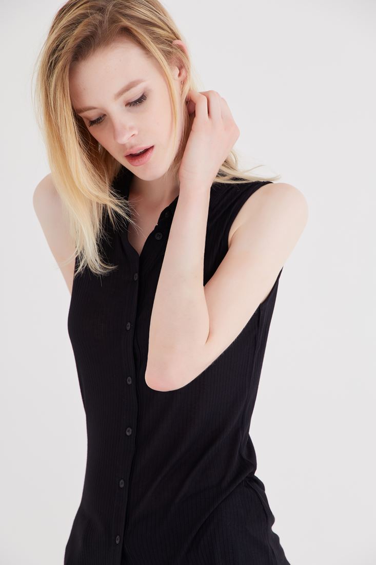 • Bayan Siyah Kolsuz Gömlek