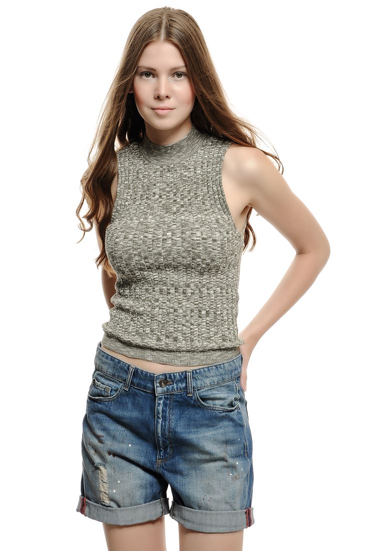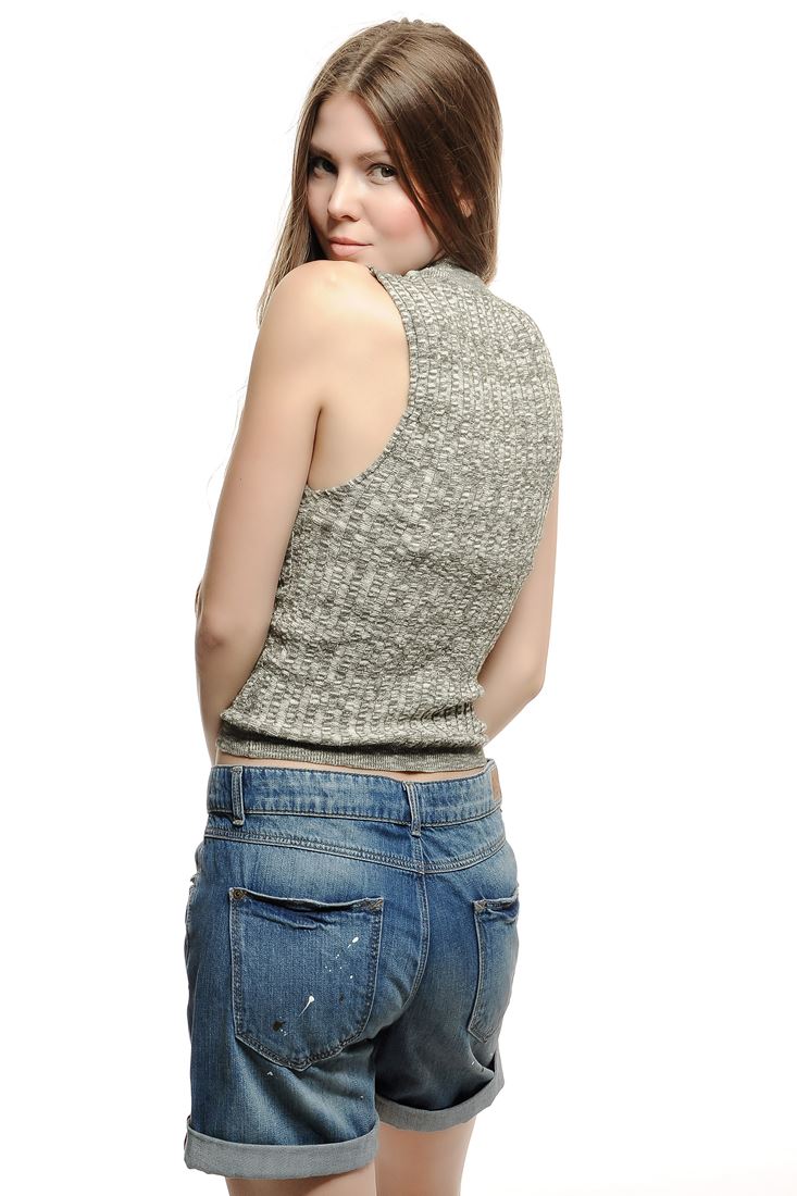 Kolsuz, sıfır yaka triko bluz
