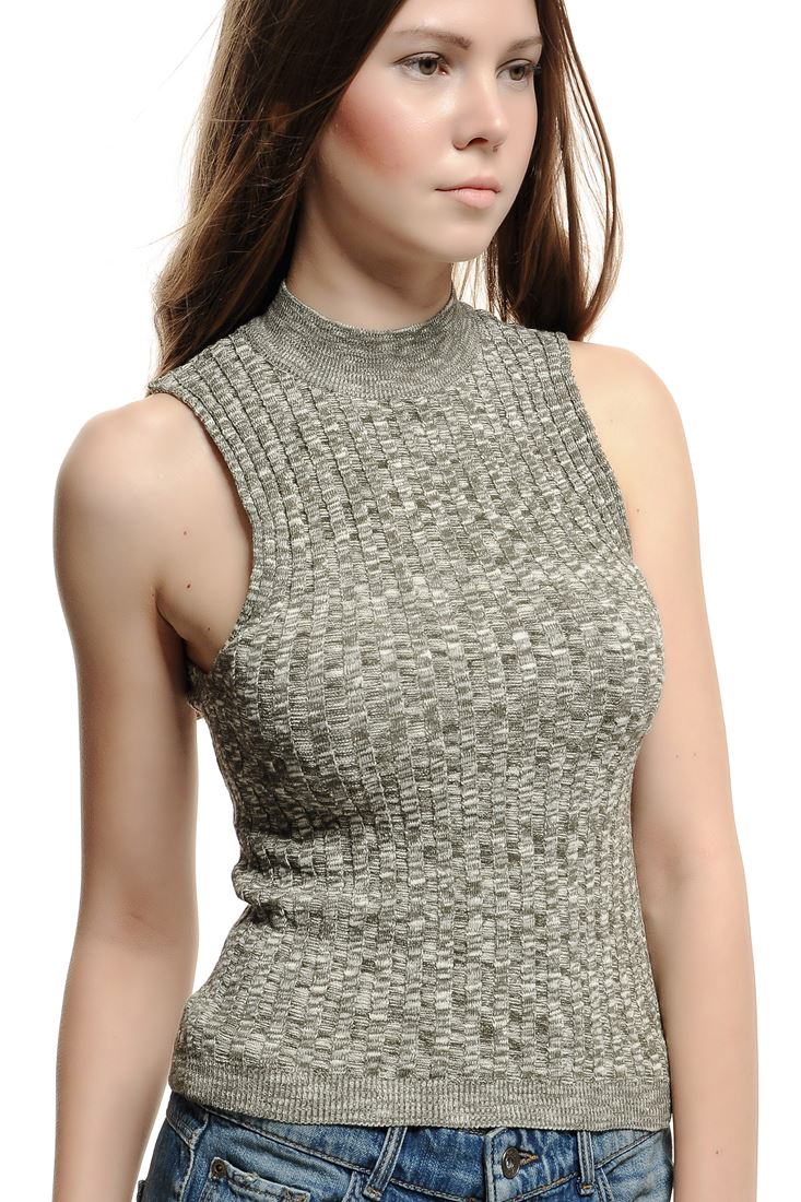 • Bayan Yeşil Kolsuz Triko Bluz