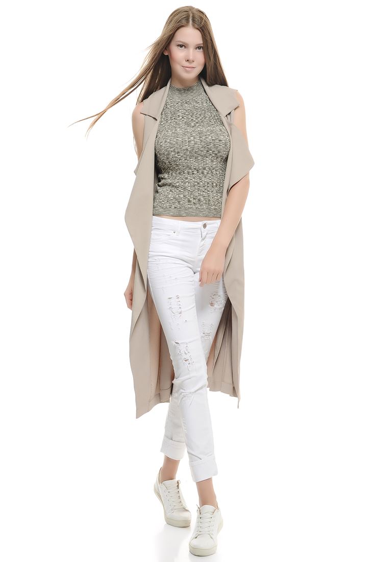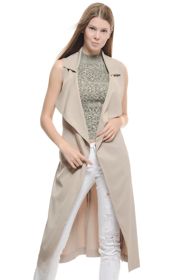 Krem Kolsuz Uzun Trençkot