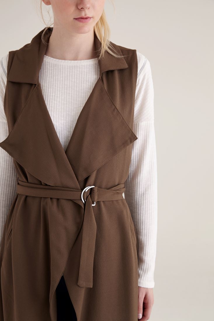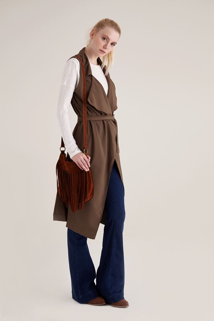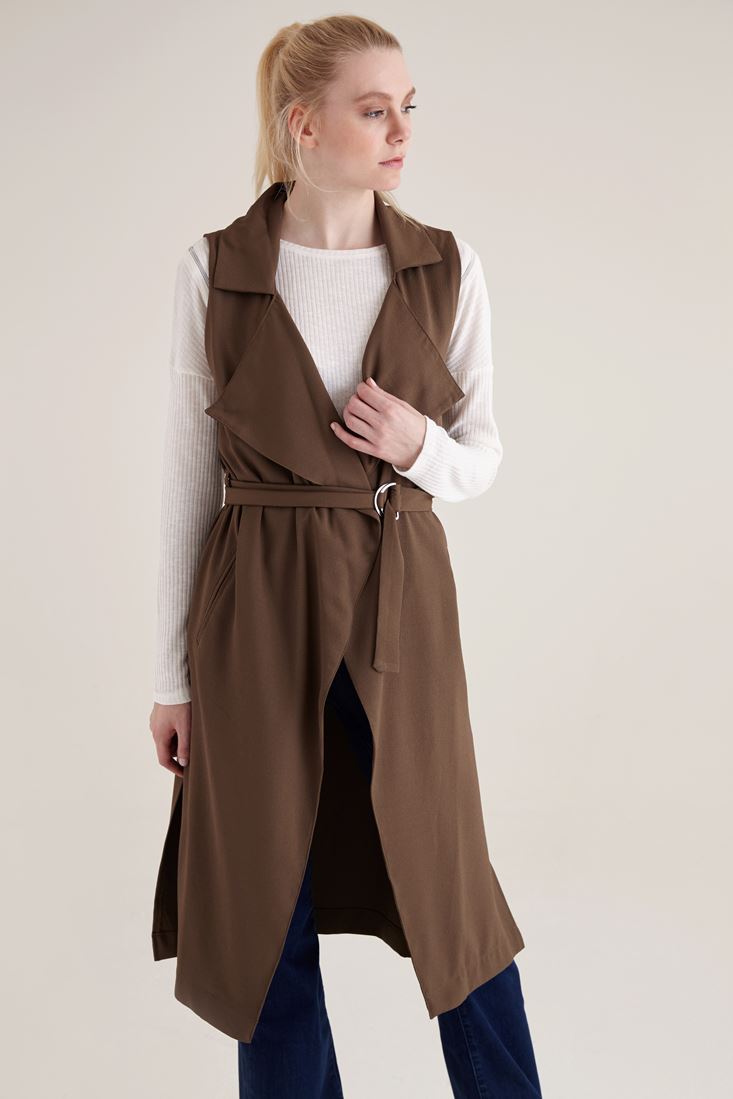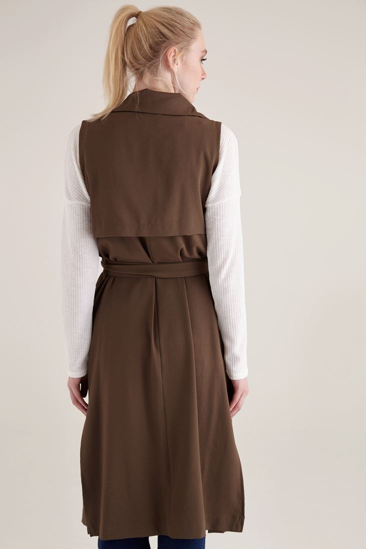 • Bayan Yeşil Kolsuz Uzun Trençkot