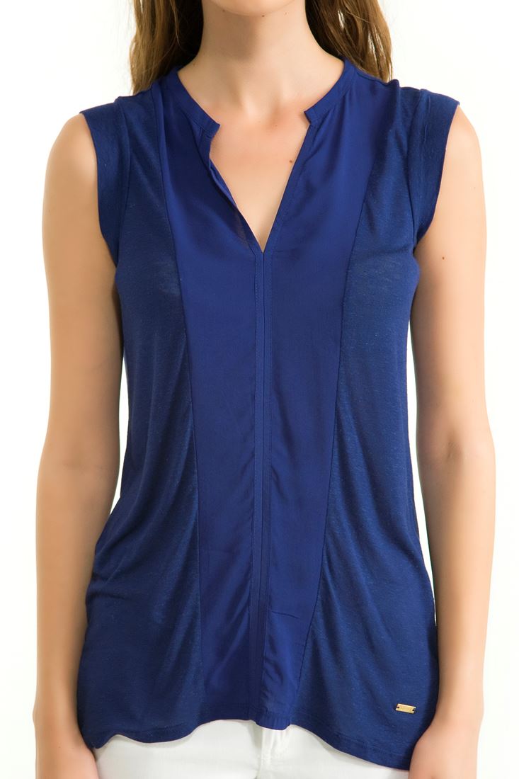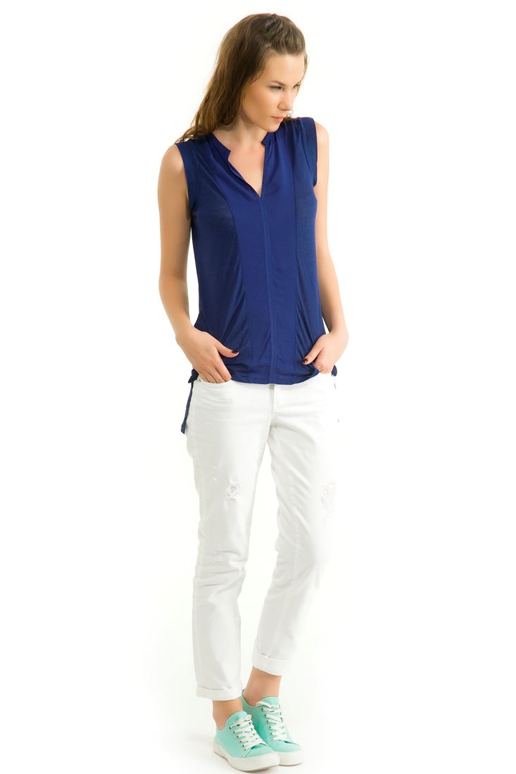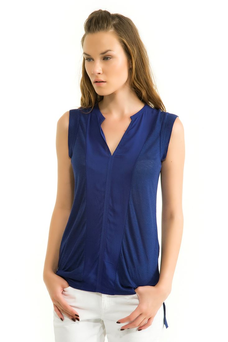 Mavi Kolsuz V Yaka Bluz