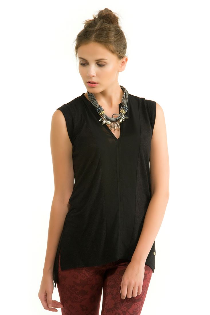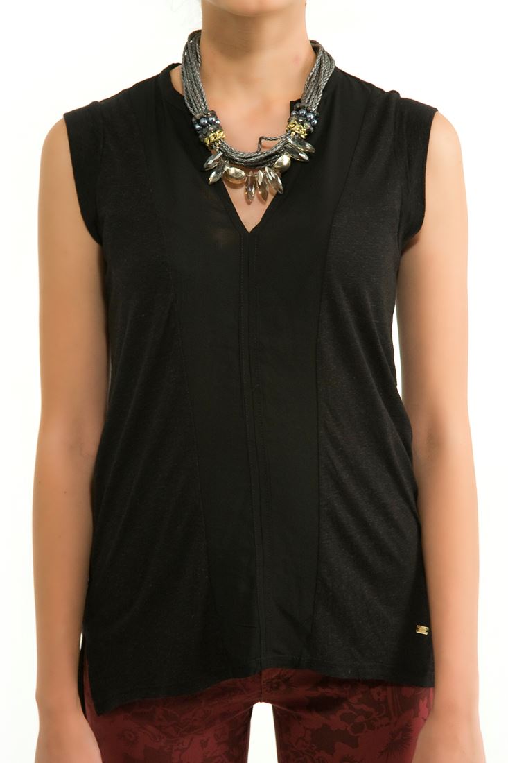 • Bayan Siyah Kolsuz V Yaka Bluz