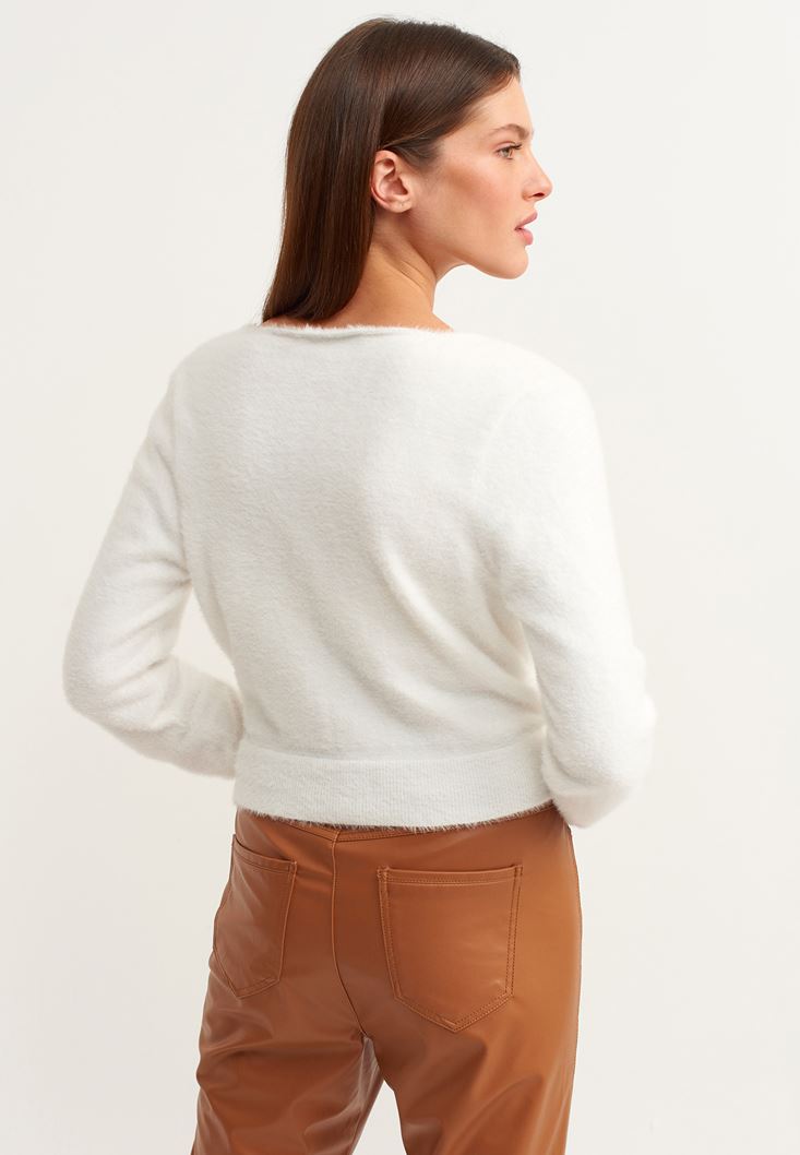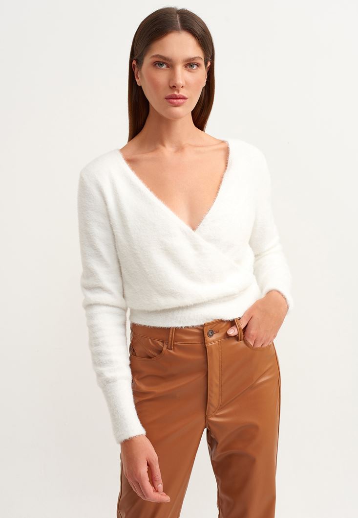 • Bayan Krem Kruvaze Crop Triko