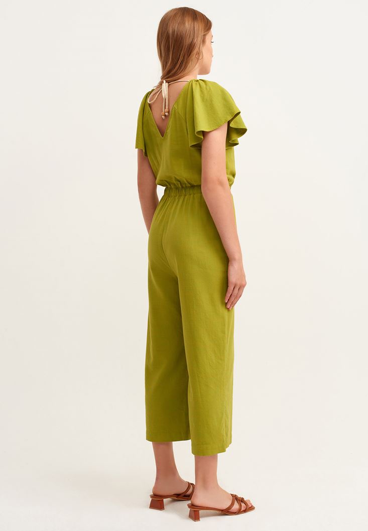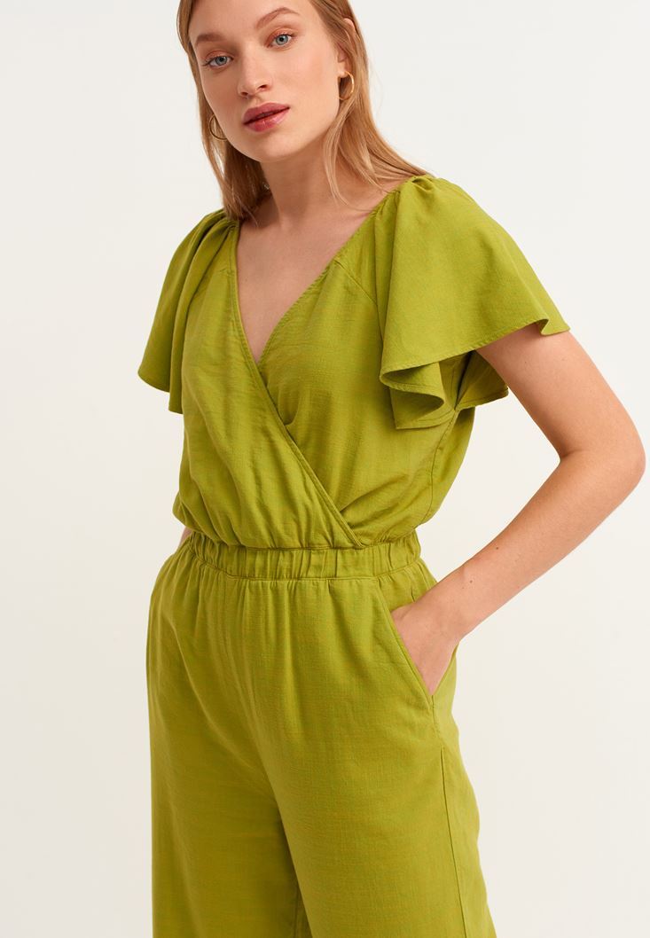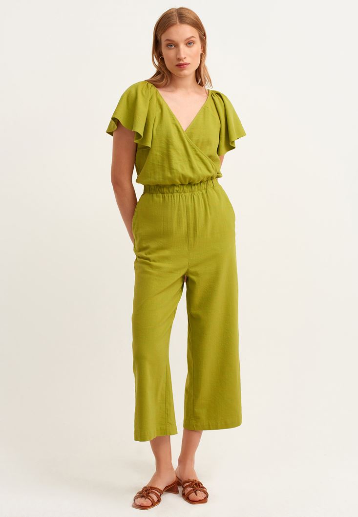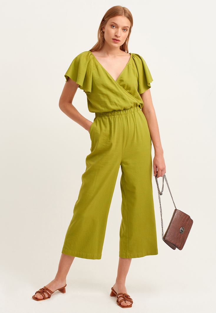Yeşil Kruvaze Culotte Tulum