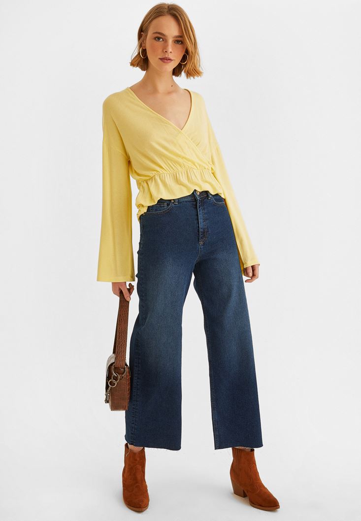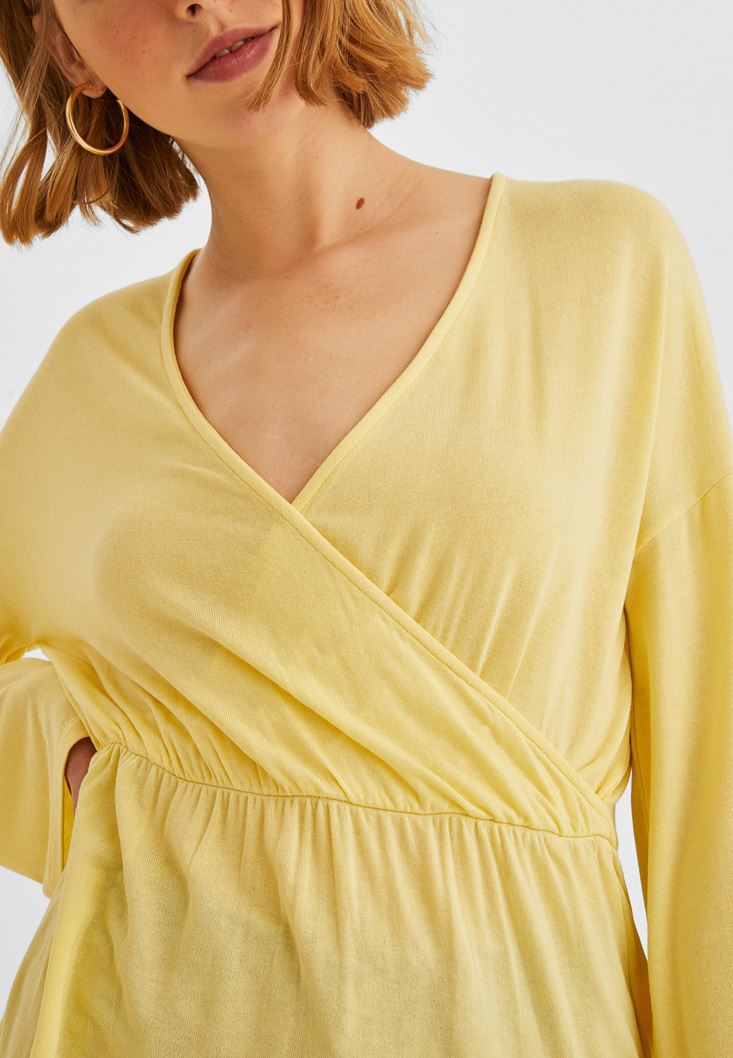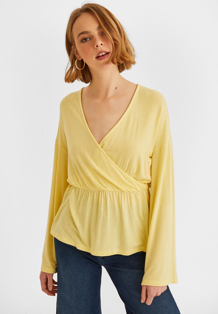 • Bayan Sarı Kruvaze Detaylı Bluz