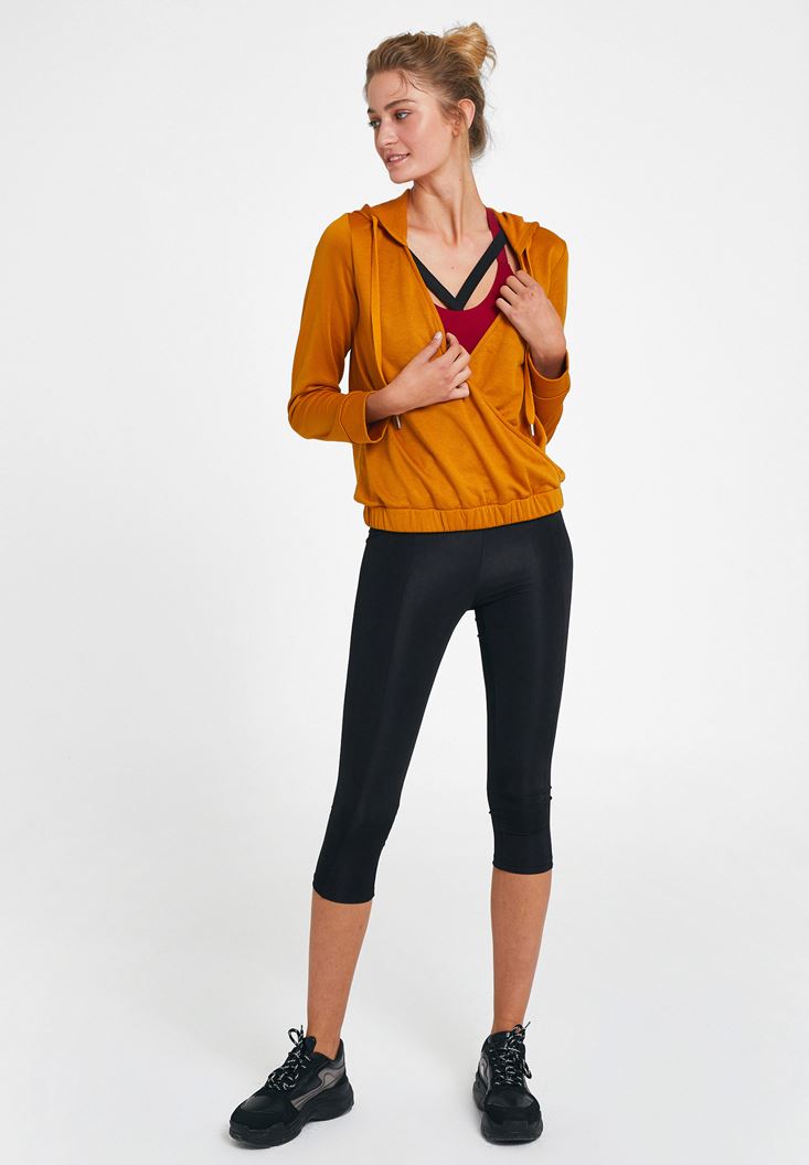 • Bayan Sarı Kruvaze Detaylı Sweatshirt