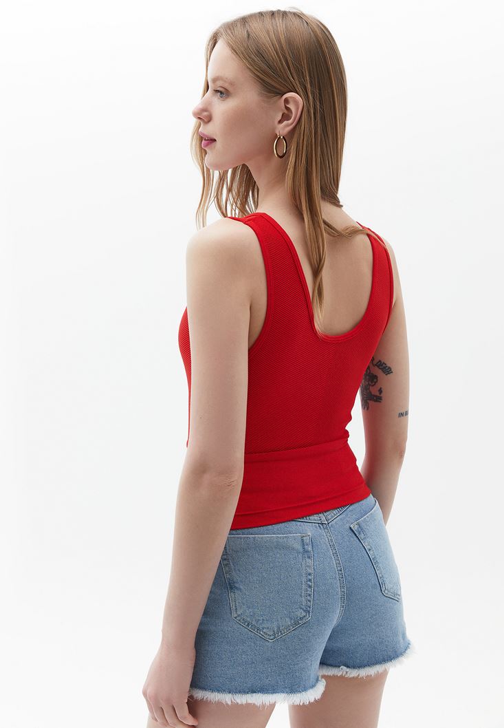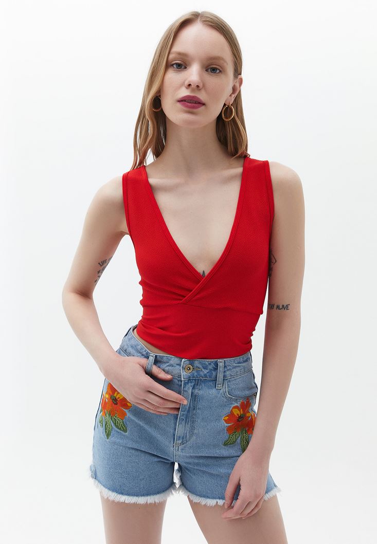 • Bayan Kırmızı Kruvaze Dikişsiz Crop Atlet