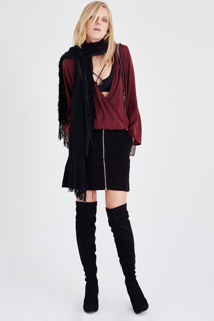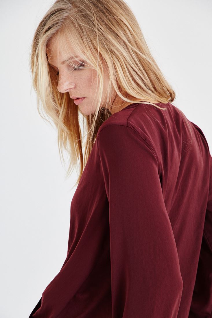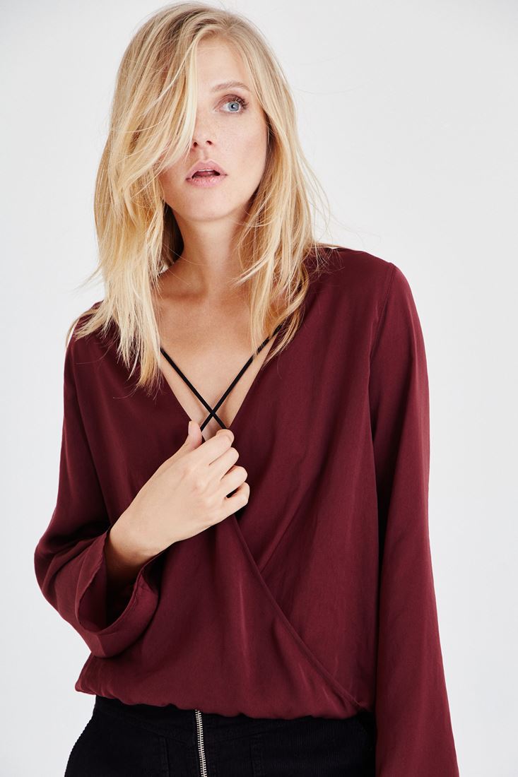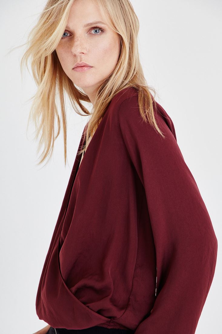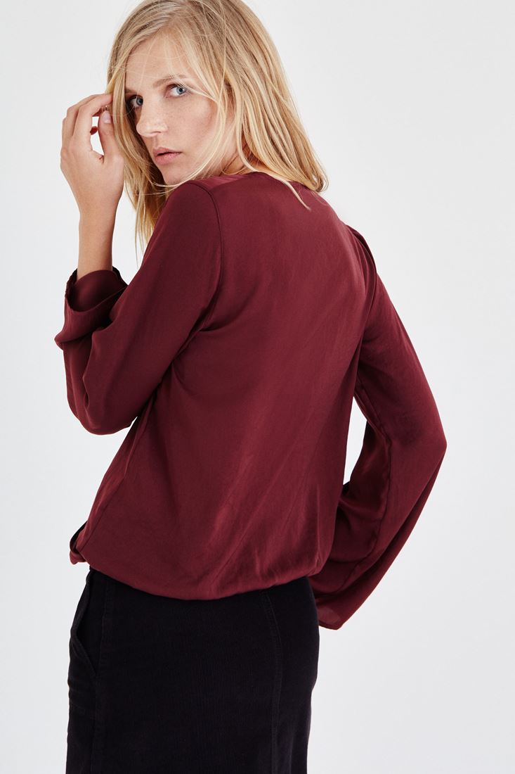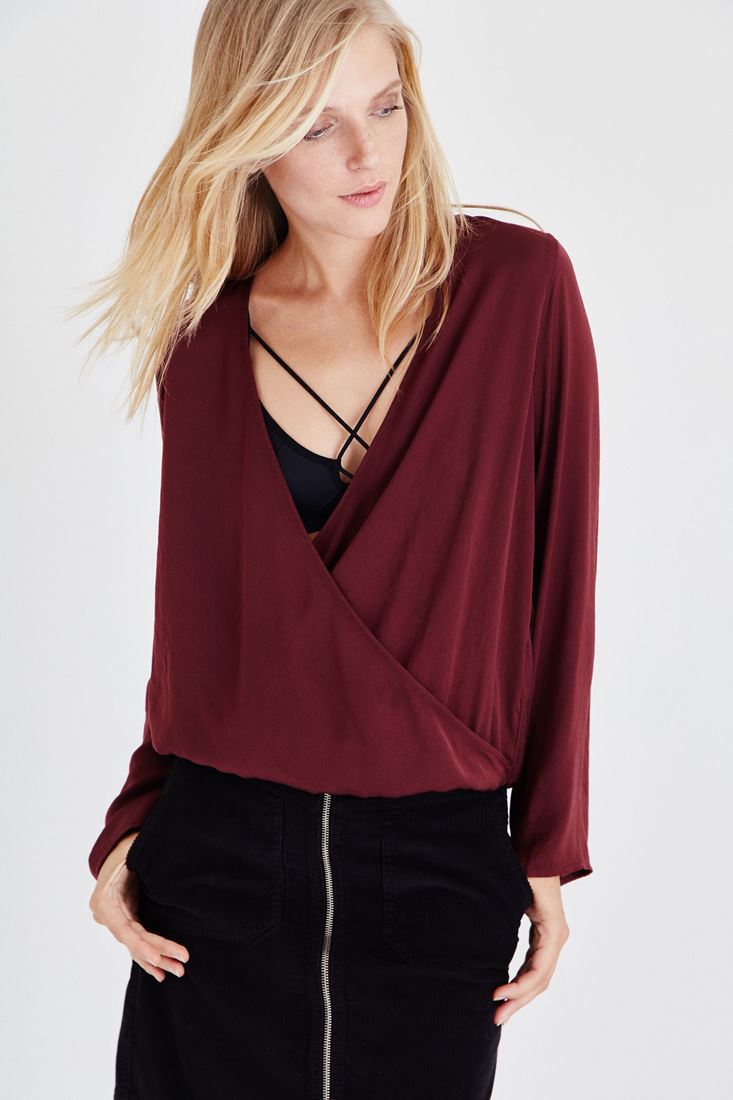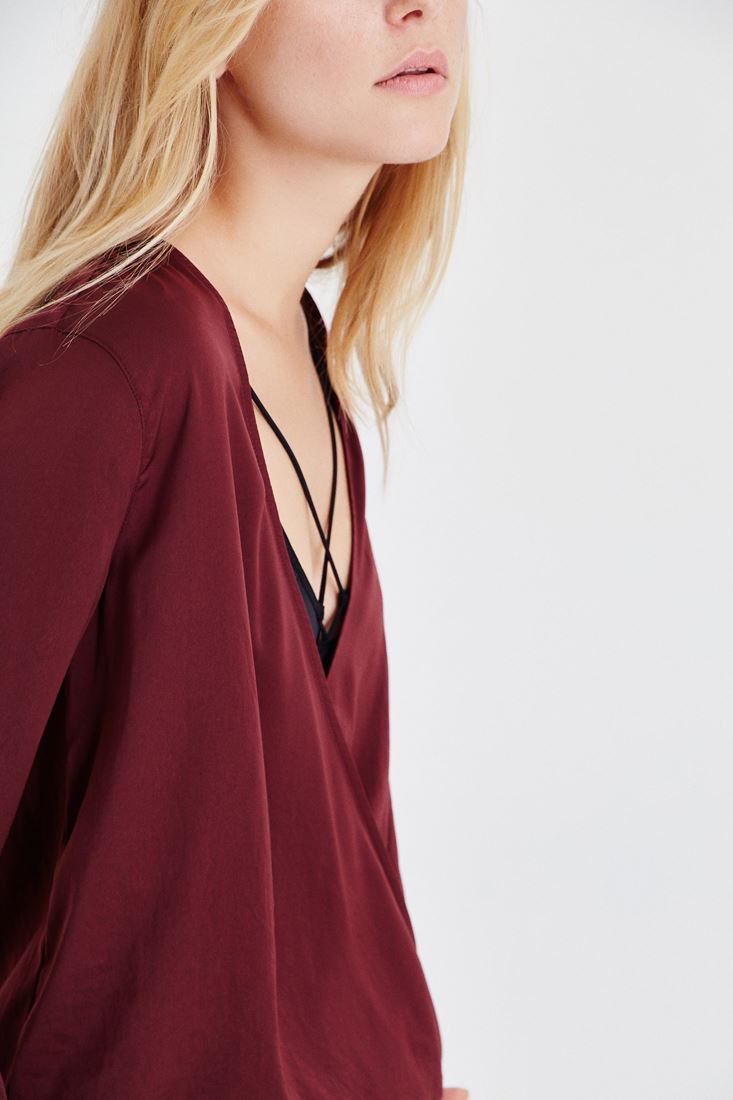• Bayan Bordo Kruvaze Dökümlü Bluz
