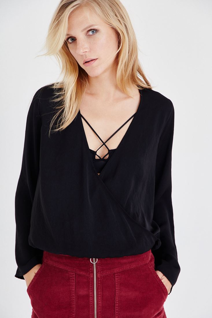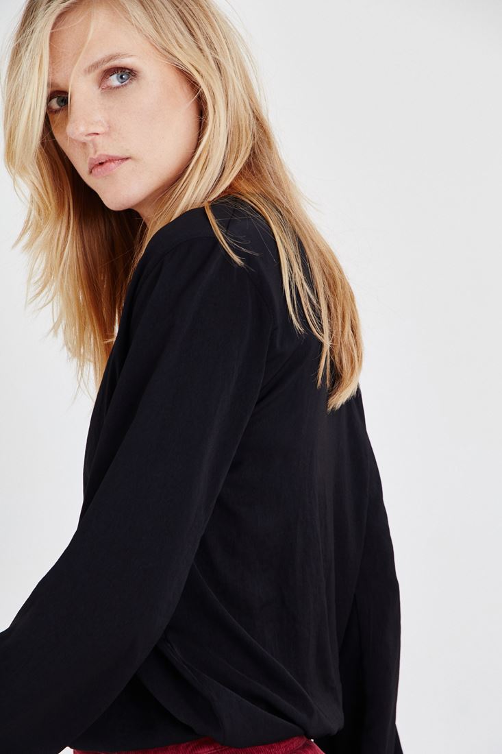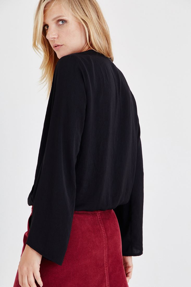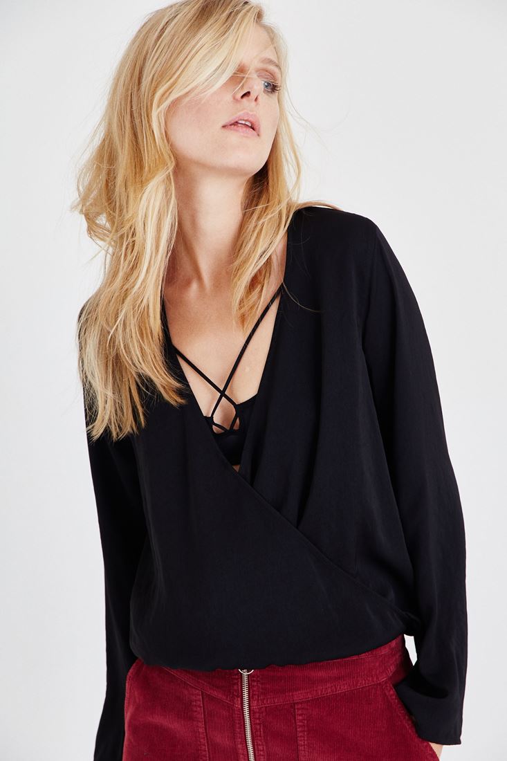 • Bayan Siyah Kruvaze Dökümlü Bluz