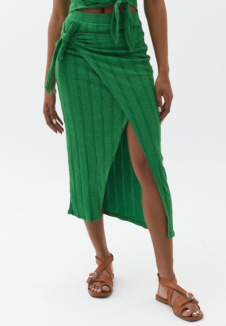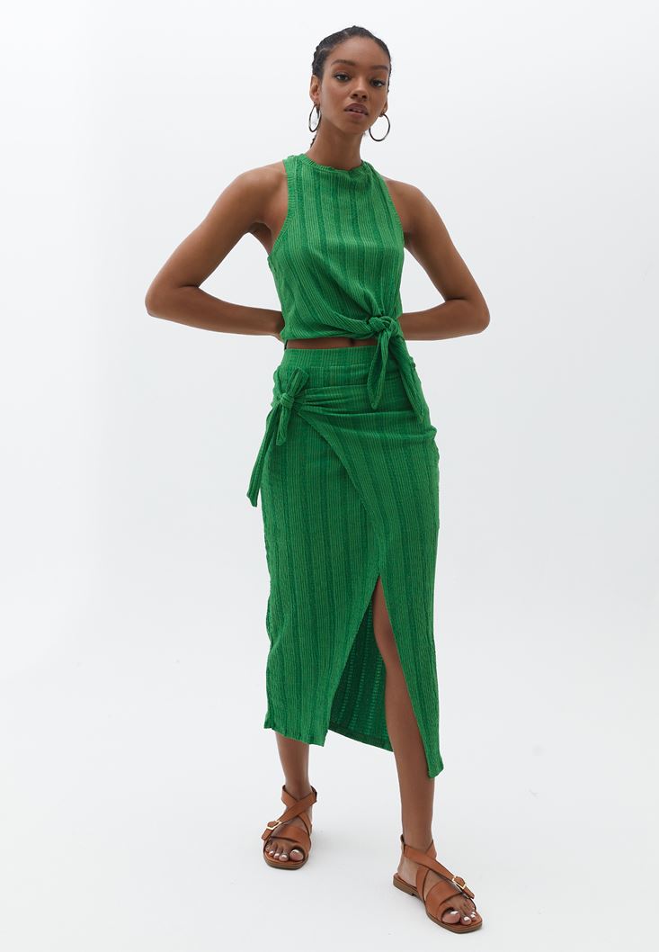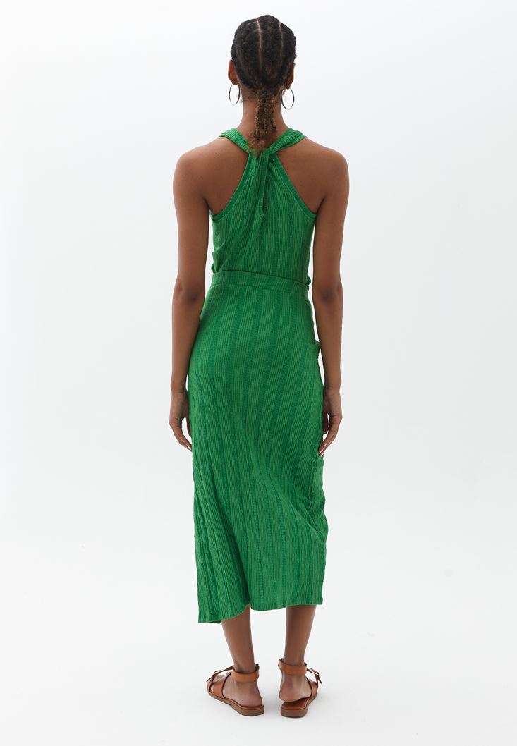 • Bayan Yeşil Kruvaze Maxi Boy Etek