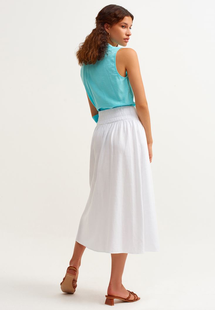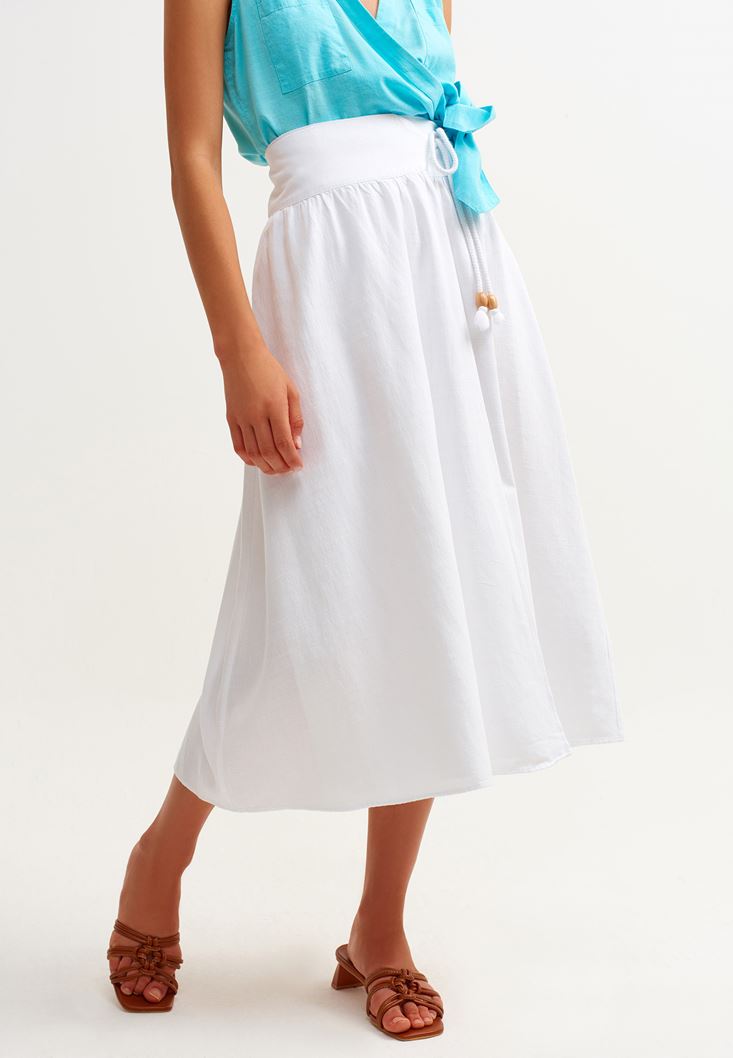 • Bayan Beyaz Kruvaze Midi Boy Etek