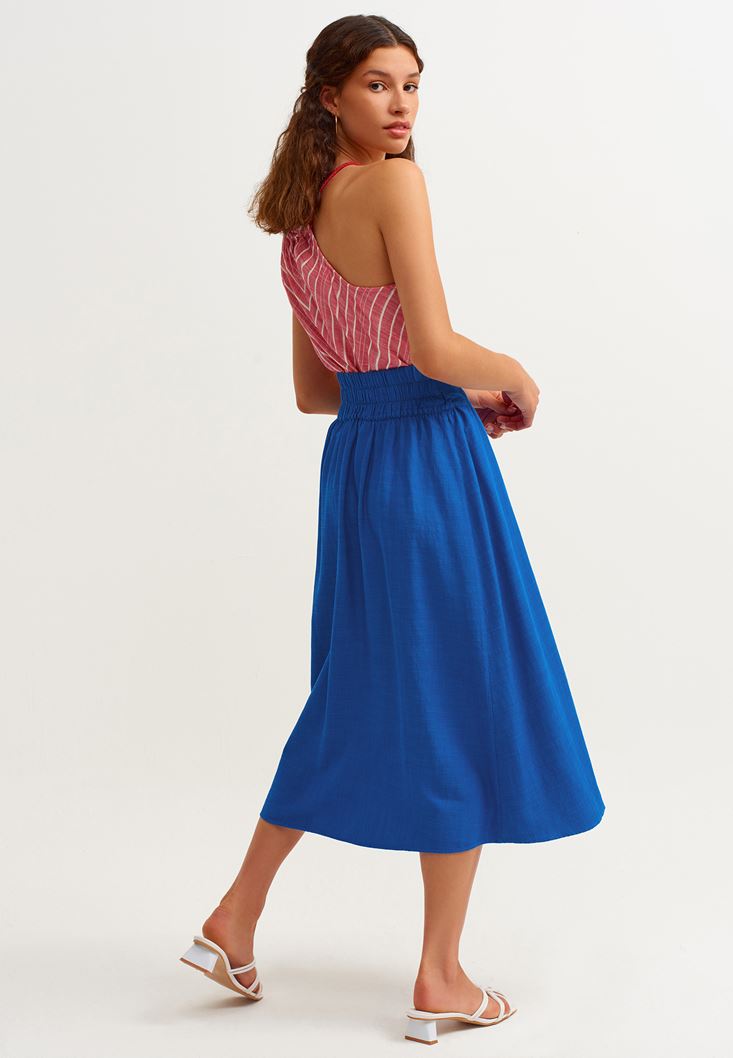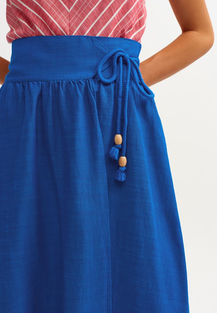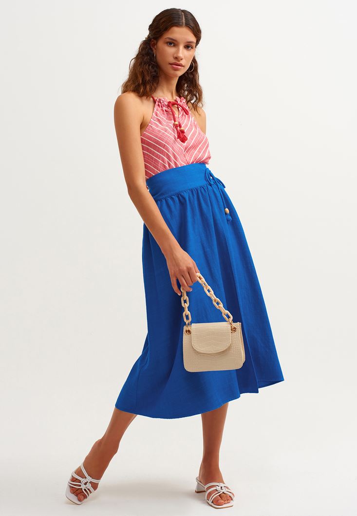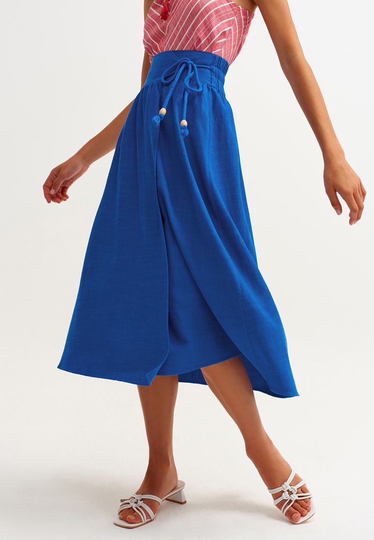 • Bayan Mavi Kruvaze Midi Boy Etek