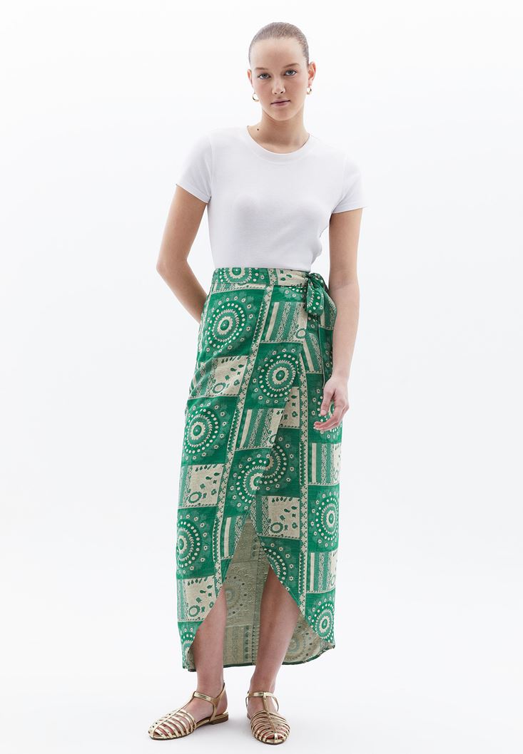 • Bayan Çok Renkli Kruvaze Uzun Etek
